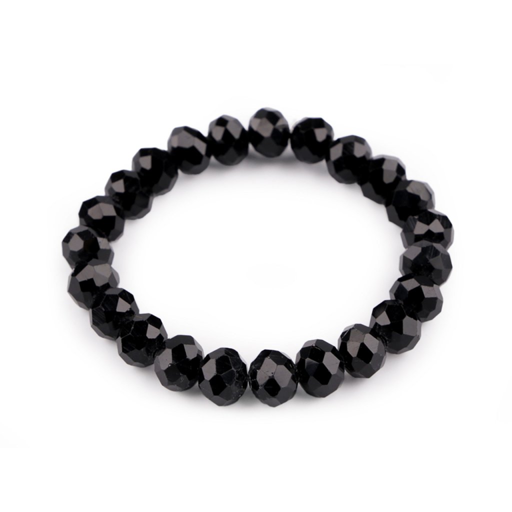 Das Armband aus geschliffenen Glasperlen mit AB-Effekt ist sehr effektvoll und elegant. Das präzise Schleifen der Perlen erzeugt ein beeindruckendes Funkeln und Glänzen. Dank des Gummibands hat es eine universelle Größe und lässt sich leicht um die Hand spannen. Schwarzes Armband Nr. 6 ist ohne AB-Behandlung.