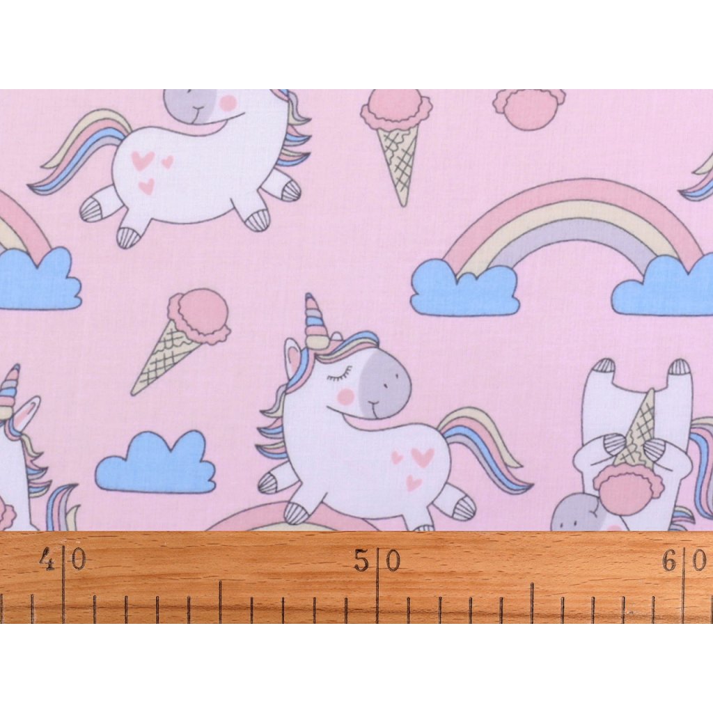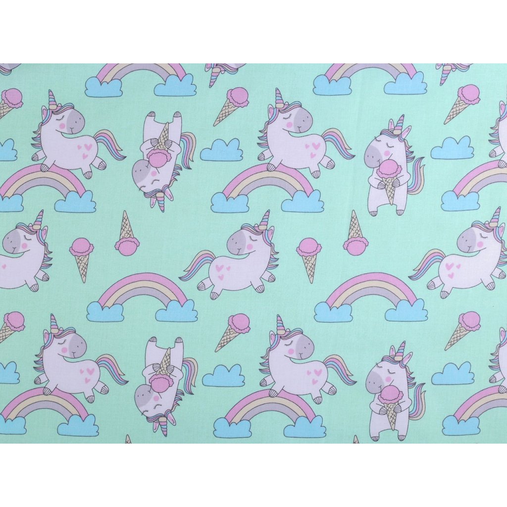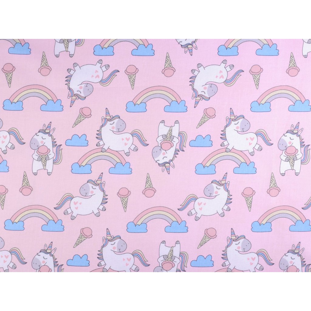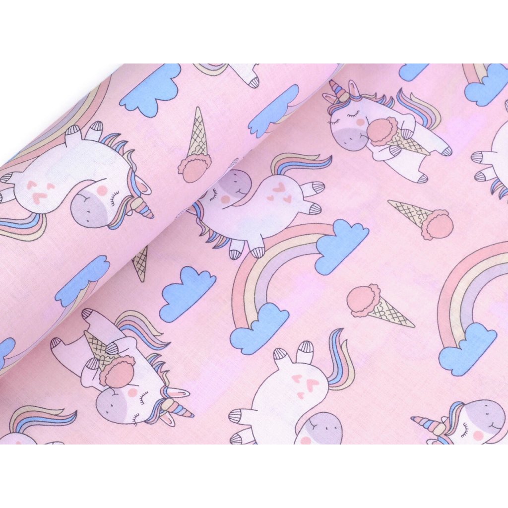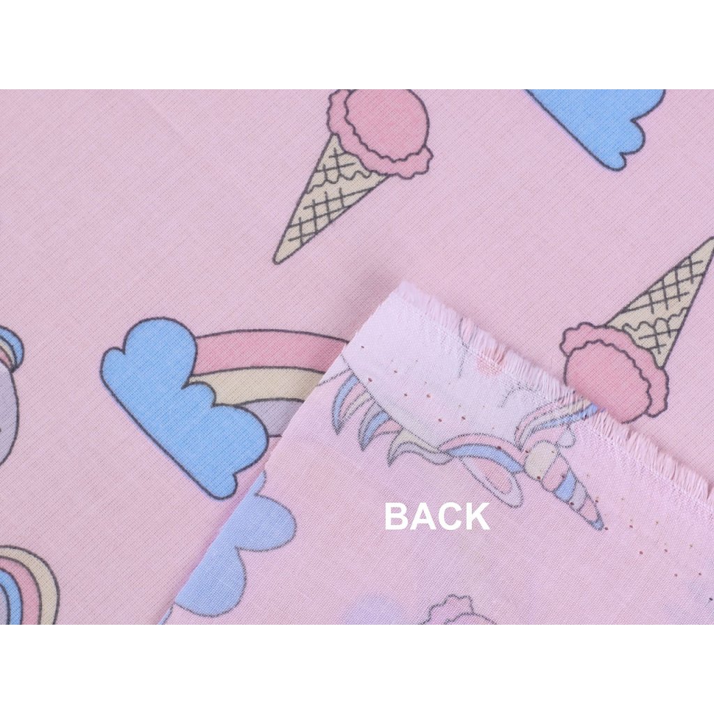 Sie können den Baumwollstoff mit Bildern von Einhörnern und Eiscremes zum Nähen von Kissen, Laken, Taschen, Organizern und Bettgittern verwenden.