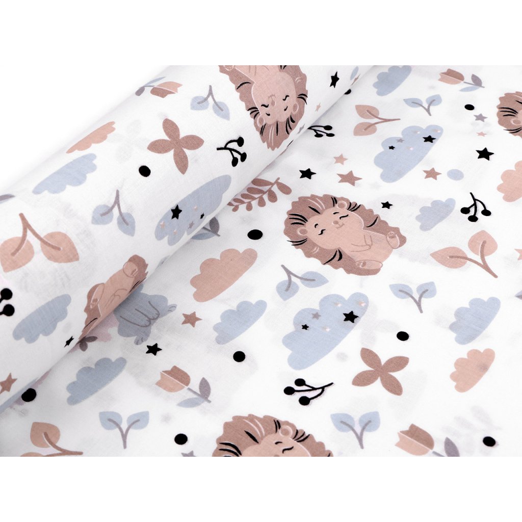 Der Baumwollstoff mit Tiermotiven eignet sich zum Nähen von Kissen, Kinderbettwäsche, Vorhängen, Säcken, Nestern für Kinder. Varianten unterscheiden sich in der Farbe der Tiere.