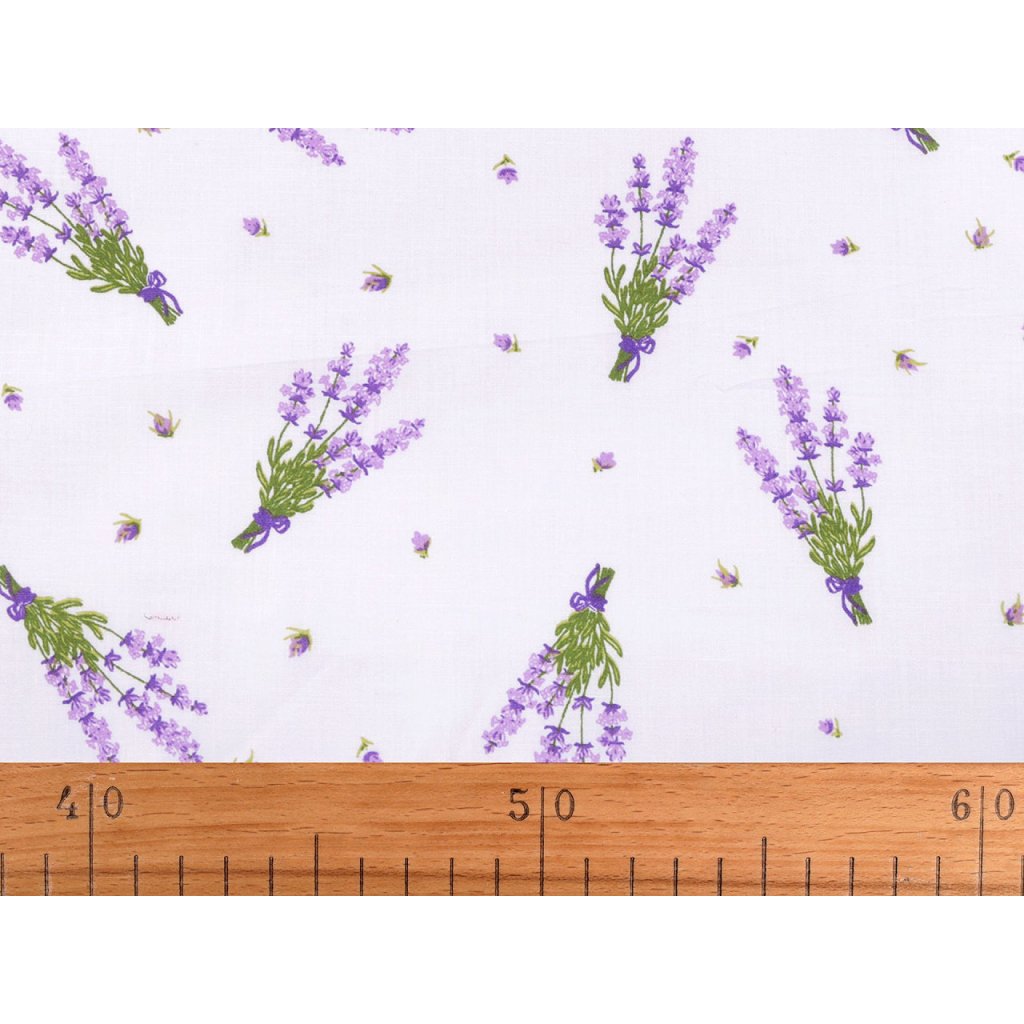 Baumwollstoff mit Lavendeldruck kann zum Nähen von Kissen, Laken, Vorhängen, Tischdecken, Taschen usw. verwendet werden.