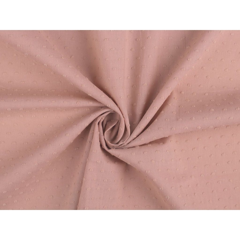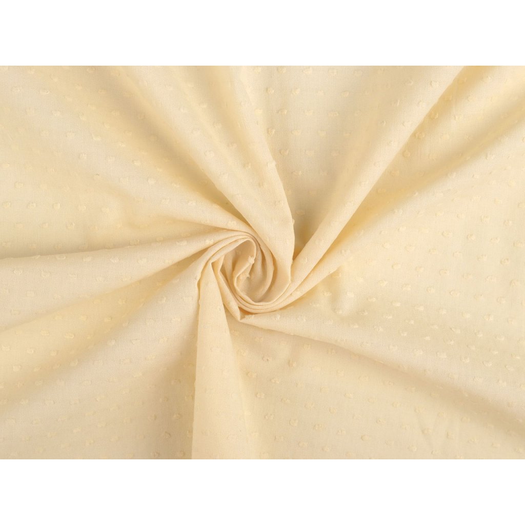 Baumwollstoff mit Knöpfen können Sie zum Nähen von Kleidung und Accessoires verwenden. Es eignet sich für leichte Sommerkleider, Röcke, Blusen usw. Das Material ist weich und fühlt sich angenehm an. Hellere Farben scheinen etwas durch.