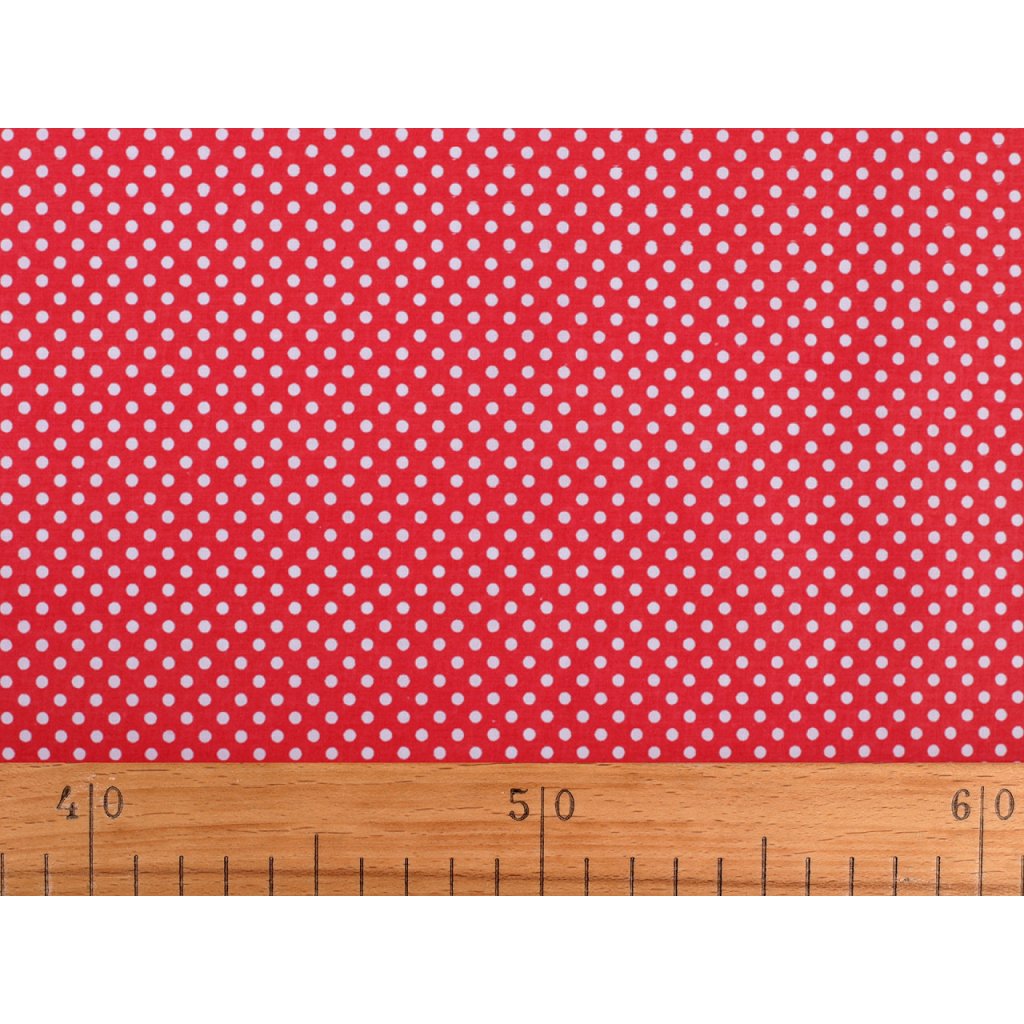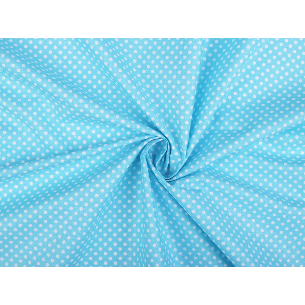 Der Baumwollstoff ist mit einem Aufdruck aus beliebten Tupfen verziert. Sie können daraus Vorhänge, Kissen, Tischdecken, Tischsets, Taschen, Beutel, Bettumrandungen und Nestchen für Kinder nähen.