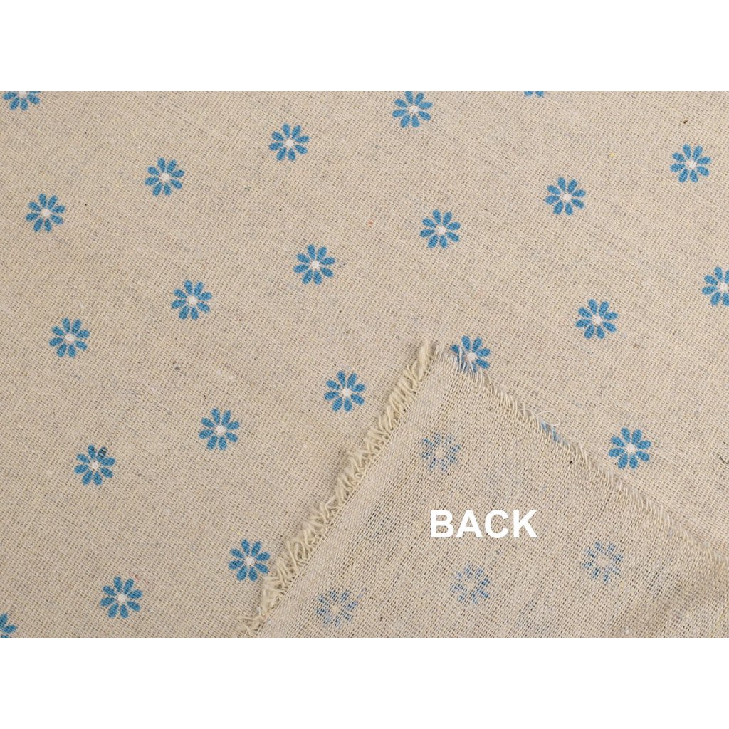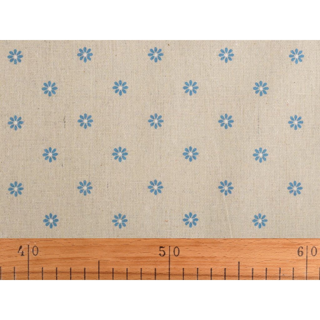 Der Baumwollstoff ist mit einem Aufdruck aus kleinen Blumen verziert. Mit seiner Leinwandbindung ähnelt es Leinen. Es ist gröber, stärker und eignet sich zum Nähen von Tischläufern, Tischsets, Dekokissen, Kindertipis usw.