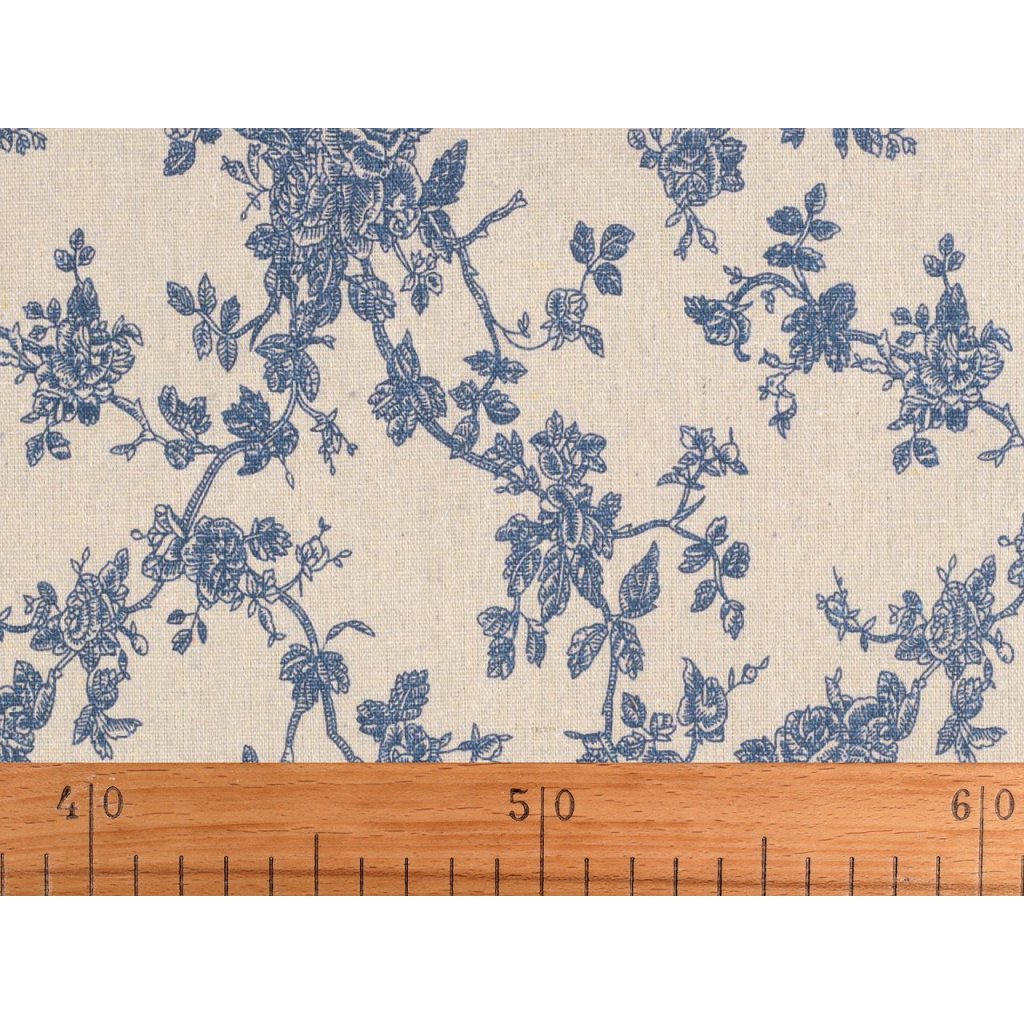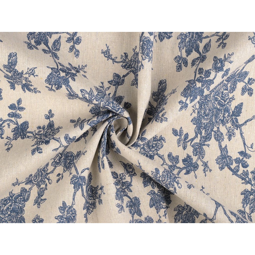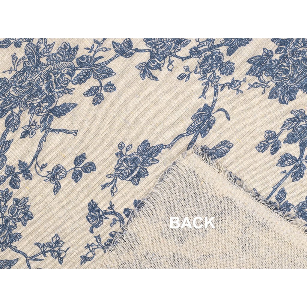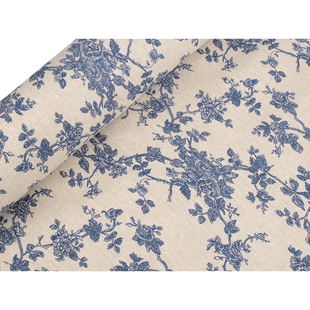 Der Stoff imitiert Leinen und ist mit einem Blumenmuster verziert. Sie können damit Tischläufer, Tischdecken, Dekokissen, Taschen, Kindertipis usw. nähen.