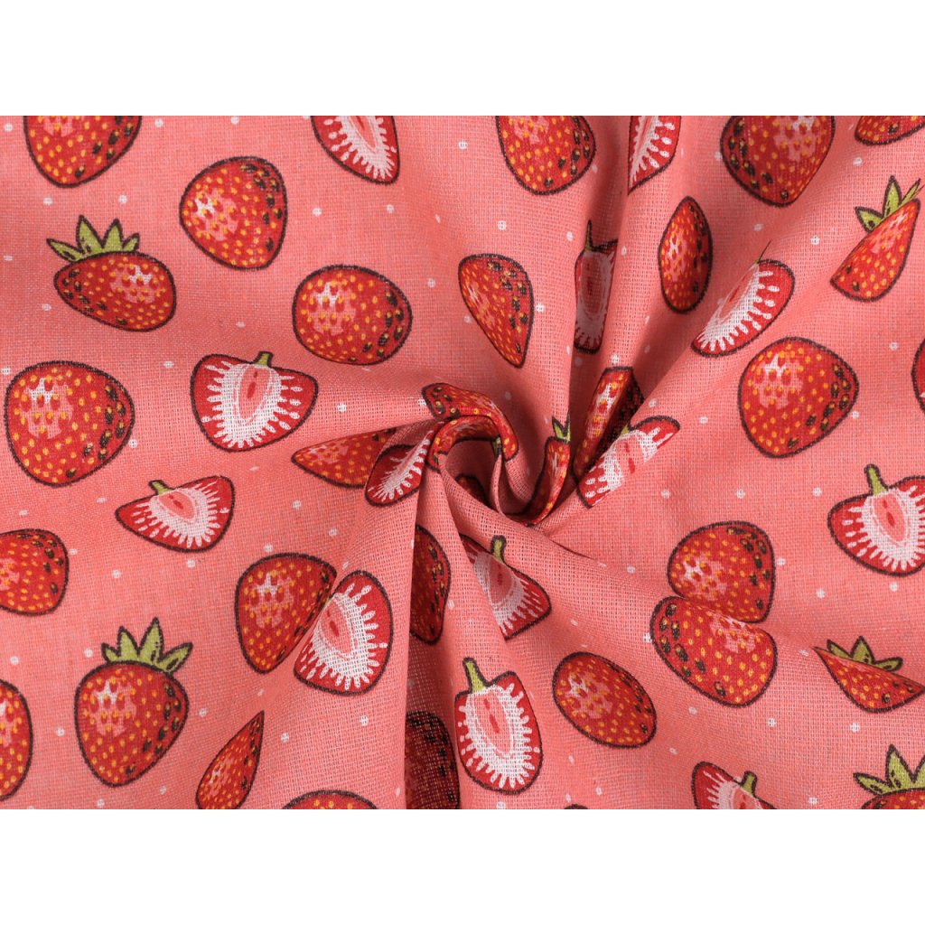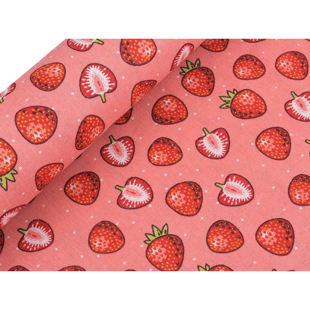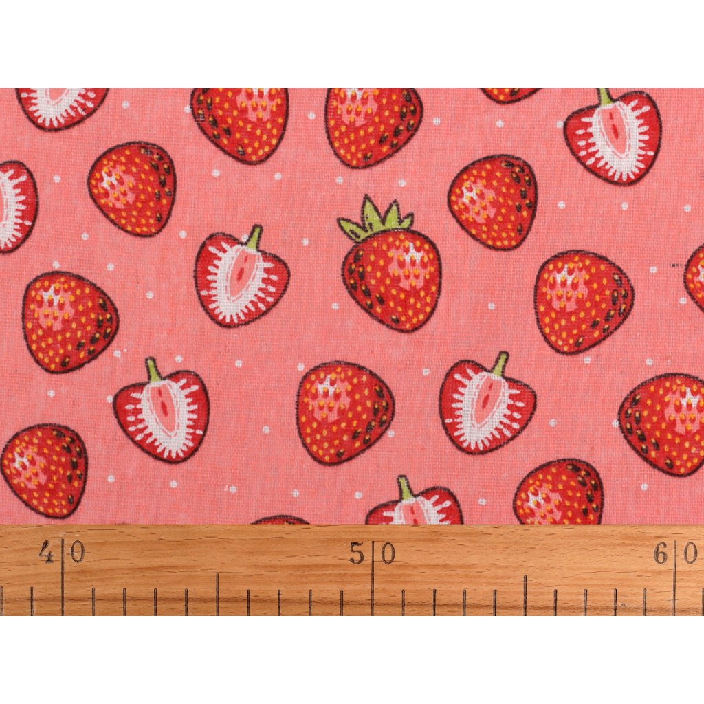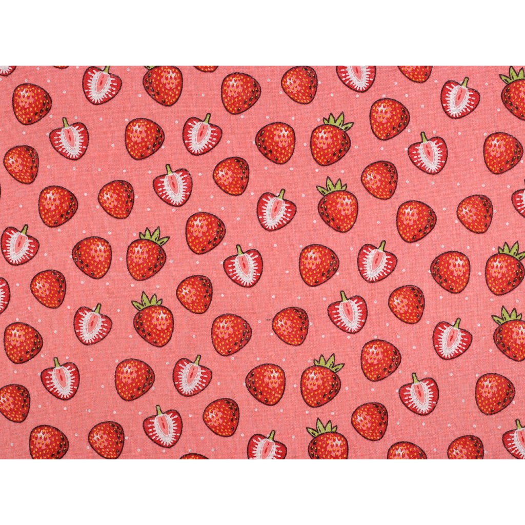Der leinenähnliche Stoff ist mit einem auffälligen Erdbeermuster verziert. Sie können damit Tischläufer, Tischdecken, Dekokissen, Taschen, Kindertipis usw. nähen.