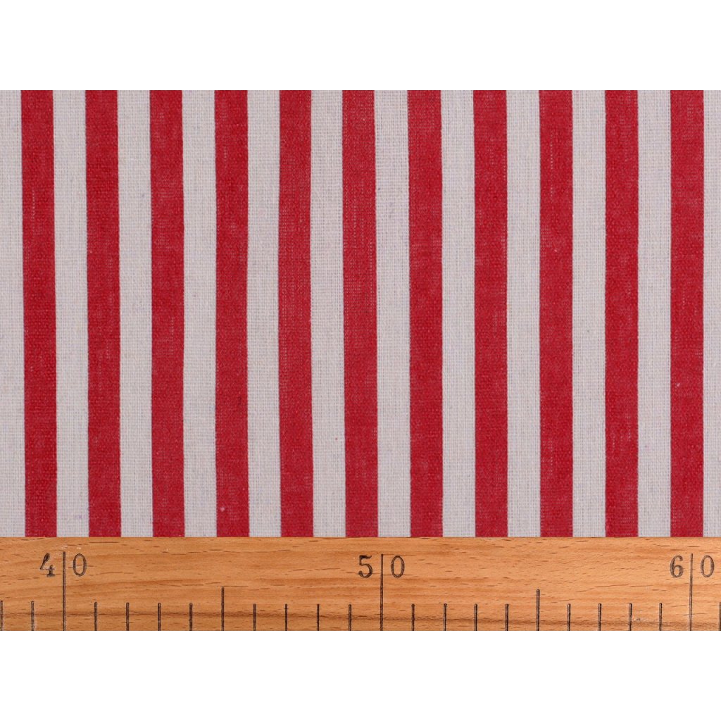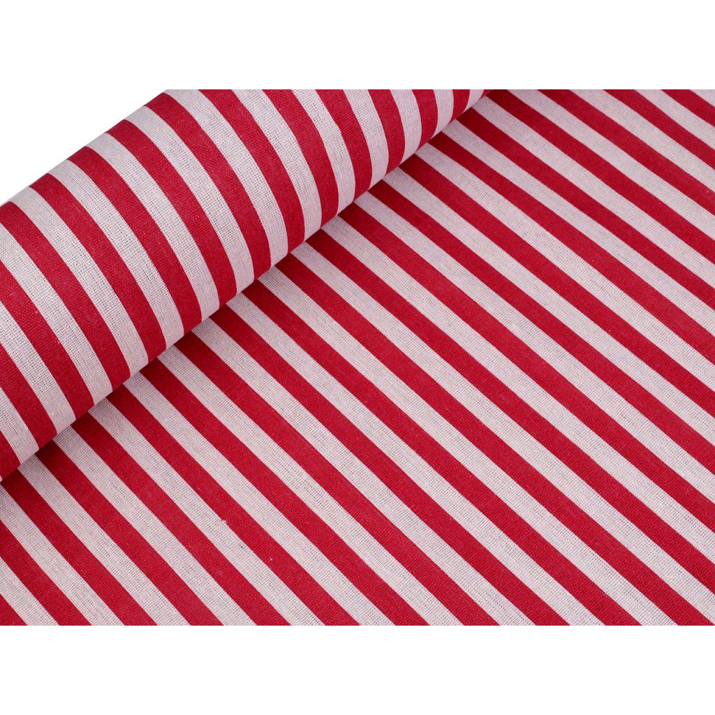 Der Baumwollstoff ist mit einem Streifendruck verziert. Mit seiner Leinwandbindung ähnelt es Leinen. Es ist gröber, stärker und eignet sich zum Nähen von Tischläufern, Tischsets, Dekokissen, Kindertipis usw. Die Breite des Streifens beträgt ca. 1 cm.
