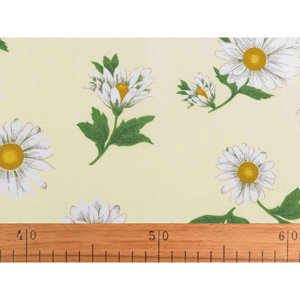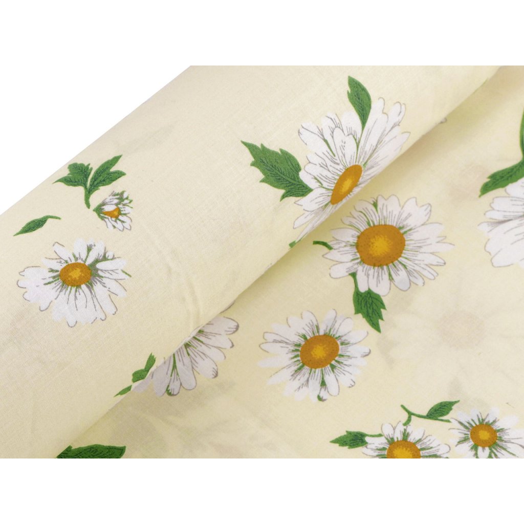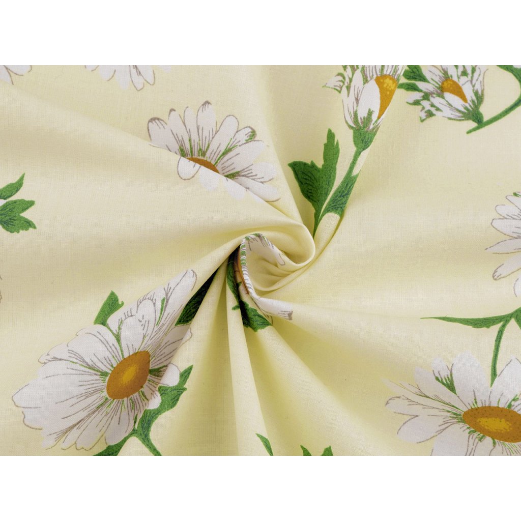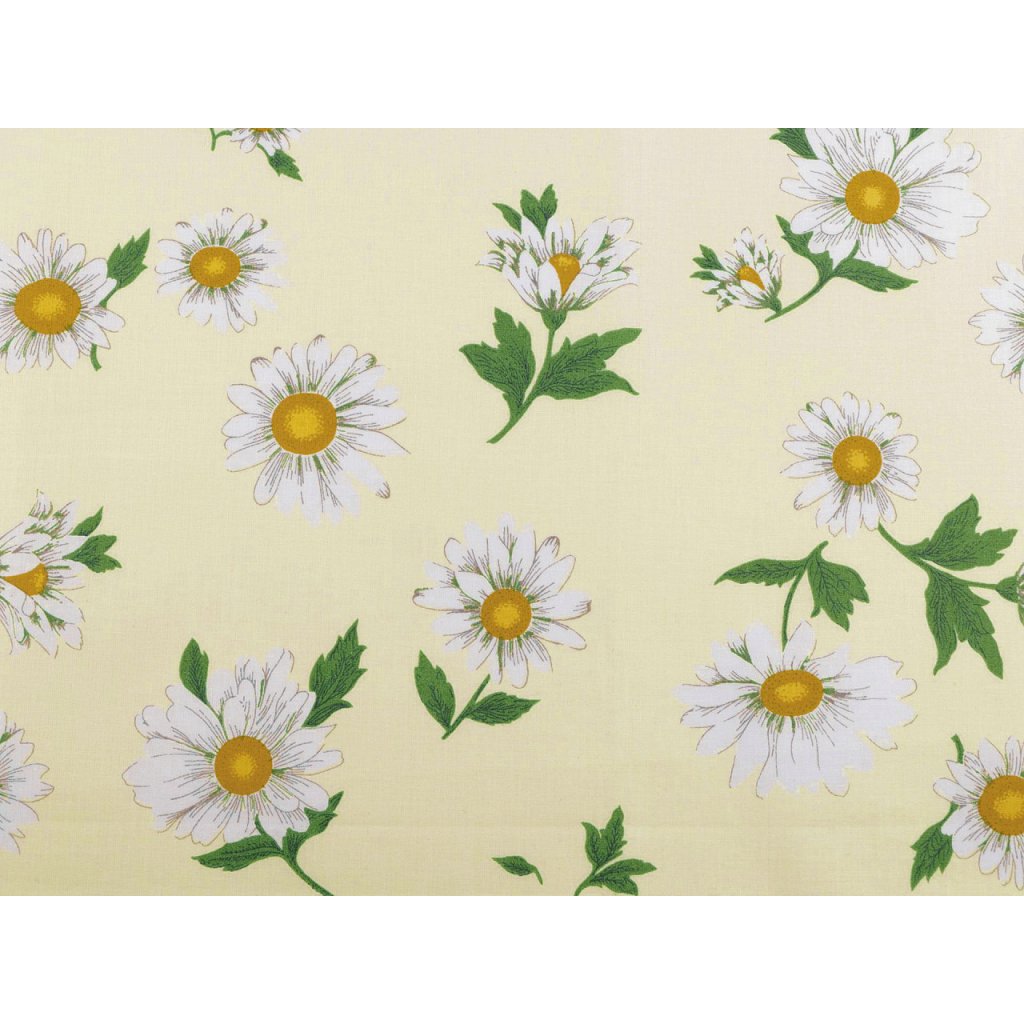 Der Baumwollstoff ist mit einem Gänseblümchen -Print verziert. Sie können daraus Bettwäsche, Kissen, Vorhänge, Tischdecken, Taschen, Beutel und verschiedene Wohndekorationen und Accessoires nähen.