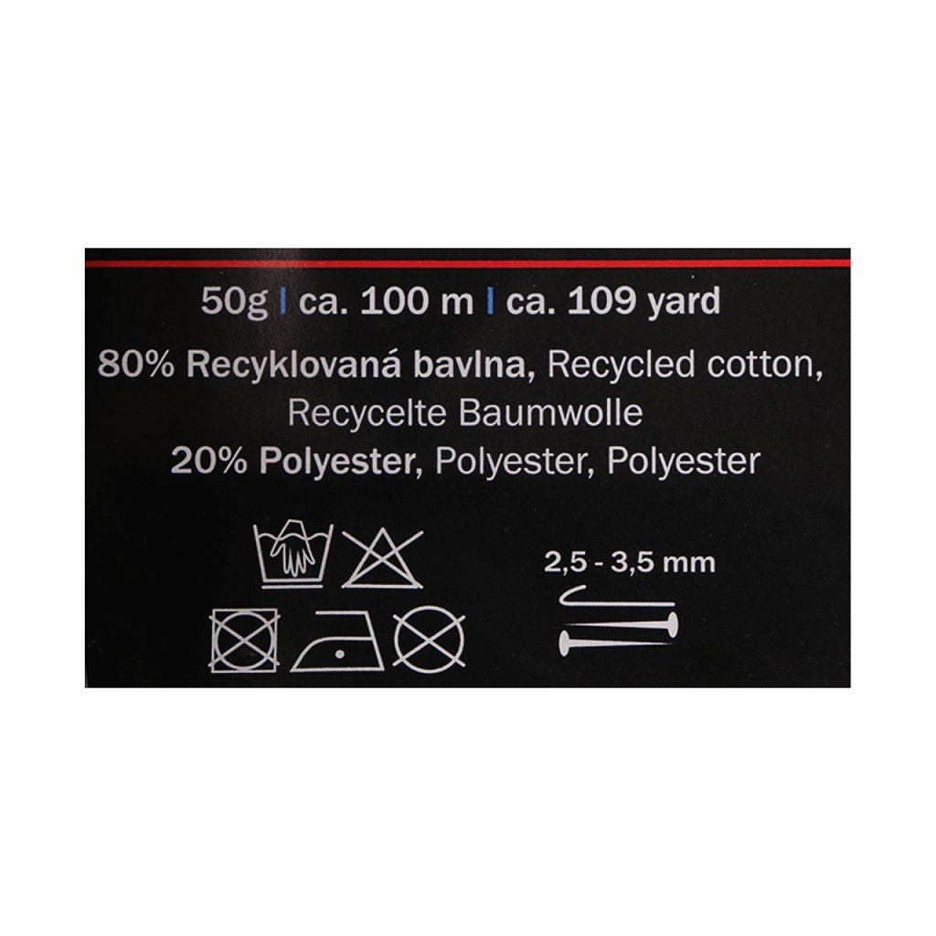 Re-Cotton-Strickgarn wird aus recycelter Baumwolle hergestellt. Es eignet sich zum Stricken und Häkeln von leichten Sommertops, Pullovern, Mützen, Wohndekorationen usw. Es kratzt nicht und fühlt sich angenehm an. Nadelstärke: 2,5 - 3,5 Hakengröße: 2,5 - 3,5