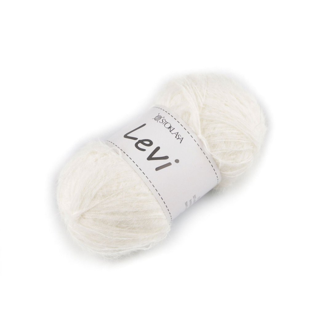 Das dünne Levi-Garn ist angenehm anzufassen und mit feinen Haaren verziert. Sie können es zum Stricken von Mützen, Handschuhen, Pullovern, Schals usw. verwenden, aber auch zum Häkeln von kleinen Figuren, Tieren und anderen Dekorationen. Wir empfehlen zum Häkeln dünne Nadeln zu verwenden.