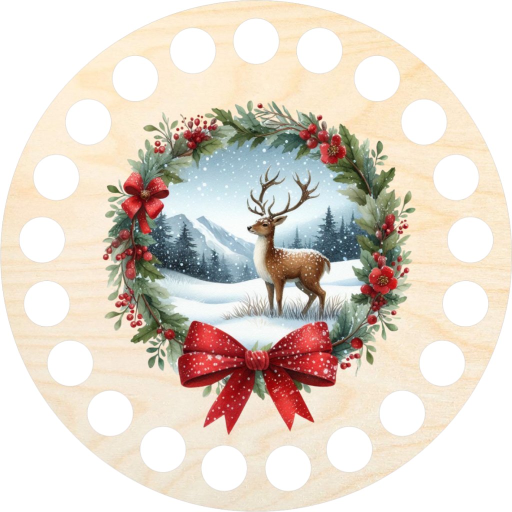 Ein stilvoller Hirsch im weihnachtlichen Kranz verleiht Ihren gehäkelten Dekorationen einen eleganten, natürlichen Akzent. Der Boden oder Deckel ist aus hochwertigem Birkenholz gefertigt und bietet sowohl Stabilität als auch eine schöne Optik für Ihre Handarbeiten.