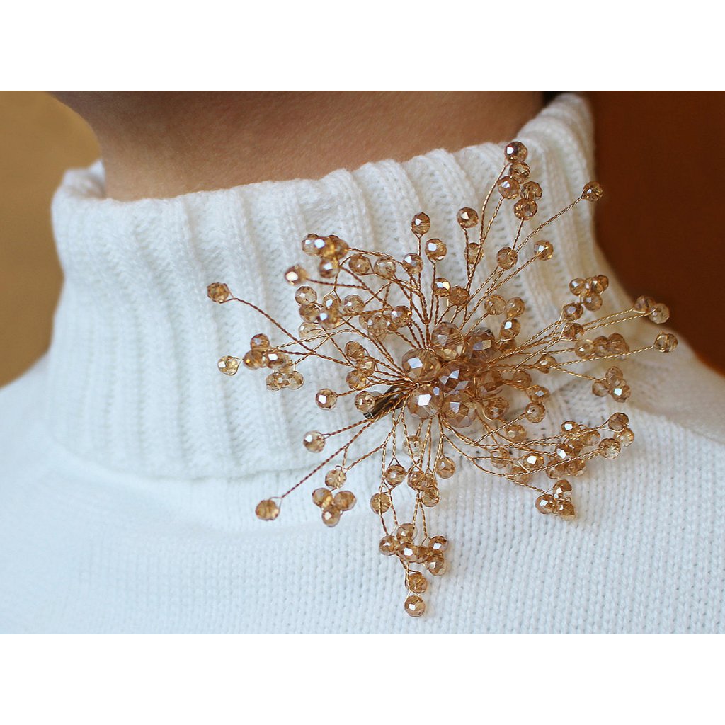 Die elegante Perlenbrosche ist absolut atemberaubend. Es entsteht der Eindruck einer wilden, gekräuselten Blume oder einer Schneeflocke. Dank der Drähte können Sie es nach Ihren Wünschen formen. Sie können es an Kleidung, Hüten, Handtaschen tragen oder einen Schal damit binden. Auf der Rückseite befindet sich eine Broschennadel.