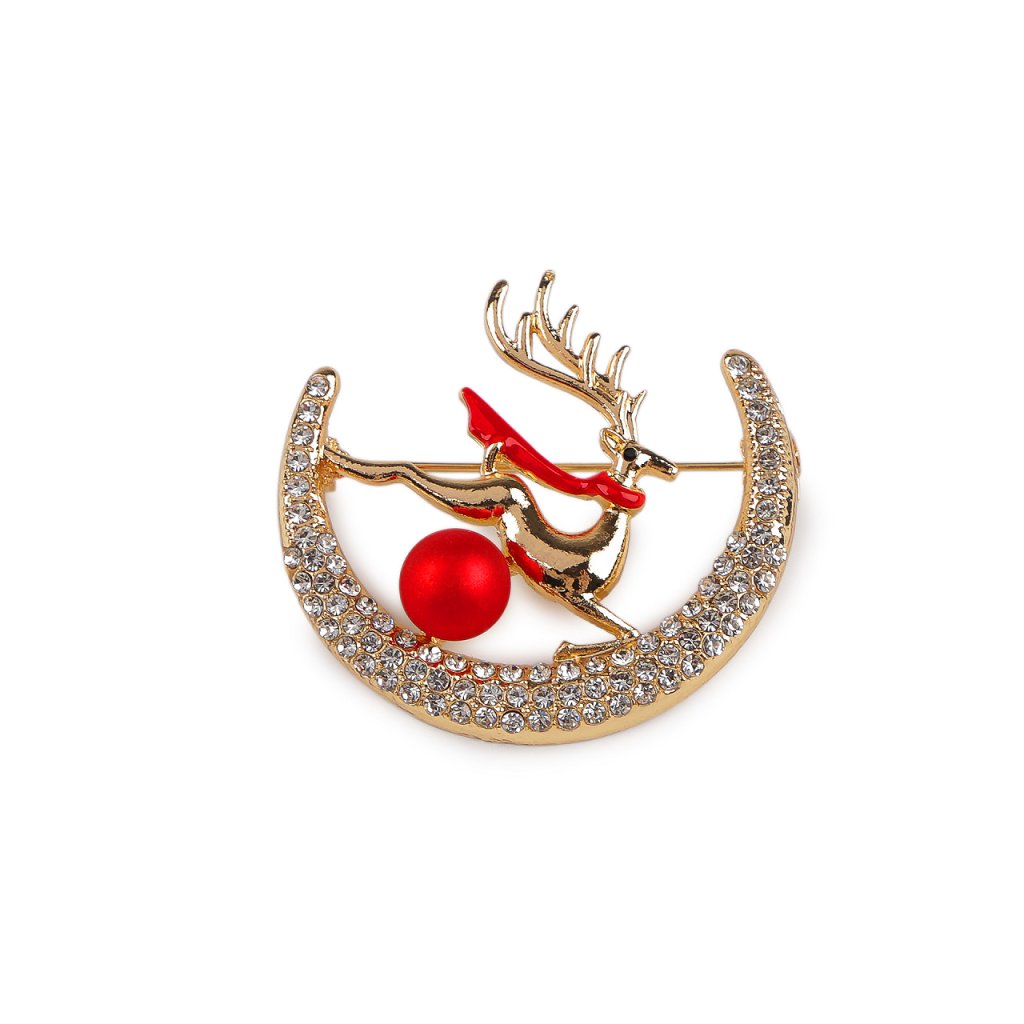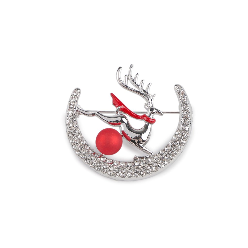 Eine elegante Brosche mit Hirsch und Mond ist das perfekte Accessoire für Ihr Outfit. Dank der funkelnden Strasssteine schmückt sie perfekt Mäntel, Jacken, Pullover, Handtaschen oder Hüte. Sie eignet sich auch zum dekorativen Befestigen eines Schals. Die Brosche hat auf der Rückseite eine Broschennadel. Sie befindet sich auf einer Plastikkarte, die an Verkaufsständern aufgehängt werden kann.