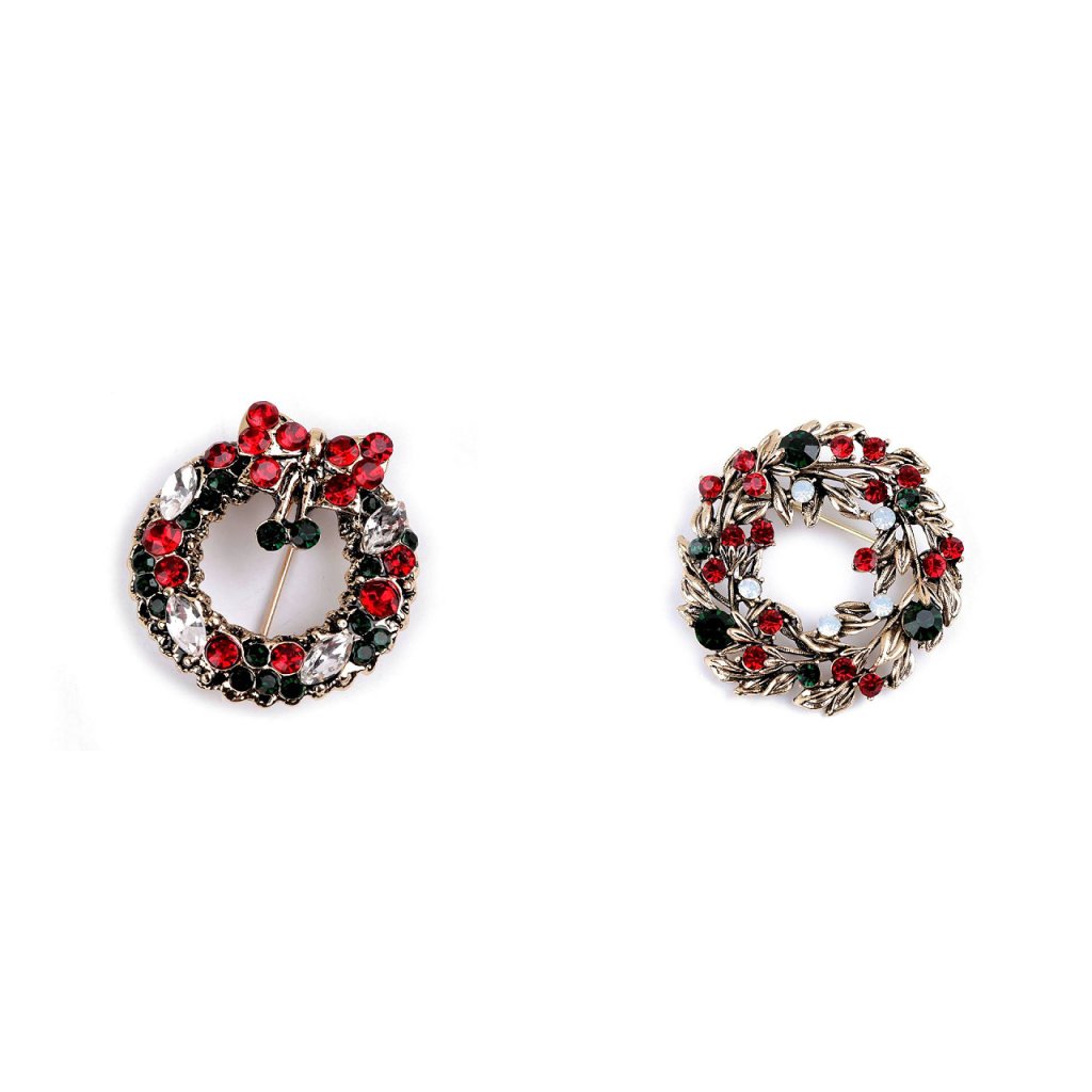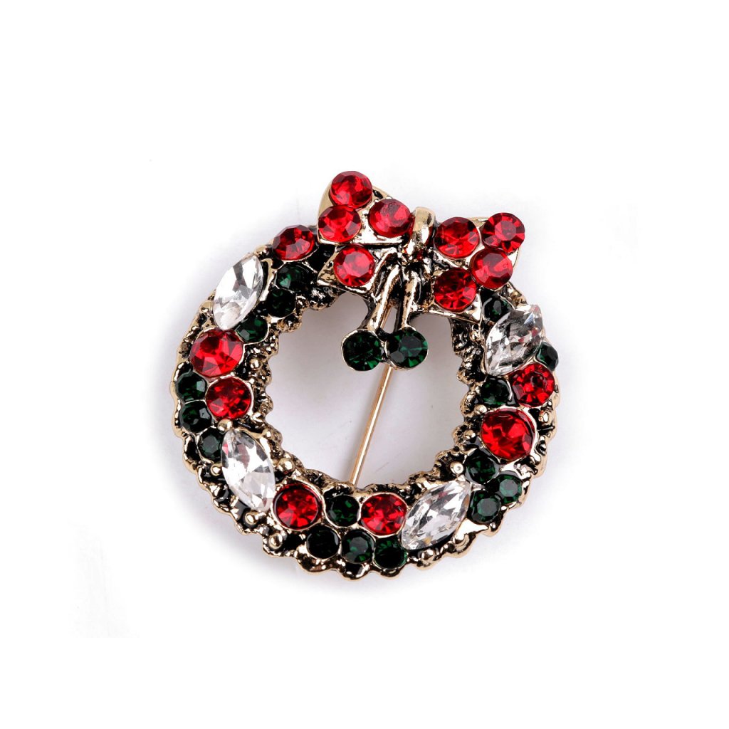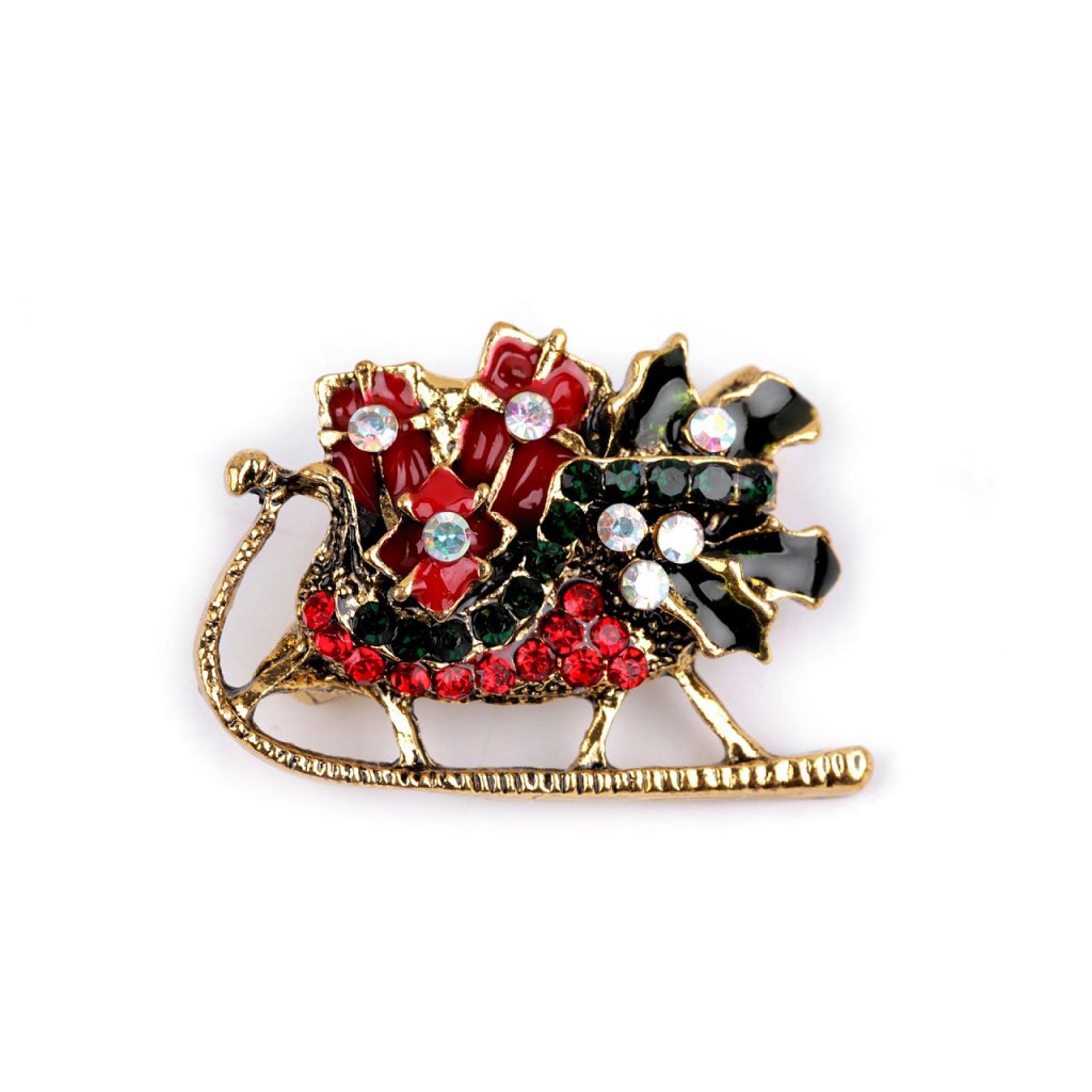 Eine elegante Weihnachtsbrosche wird eine interessante Ergänzung zu Ihrem Outfit sein. Dank der funkelnden geschliffenen Steine schmücken sie stilvoll Shirts, Jacken, Pullover, Handtaschen oder Hüte. Die Brosche hat auf der Rückseite eine Broschennadel . Es befindet sich auf einer Plastikkarte, die an den Verkaufsregalen aufgehängt werden kann.
