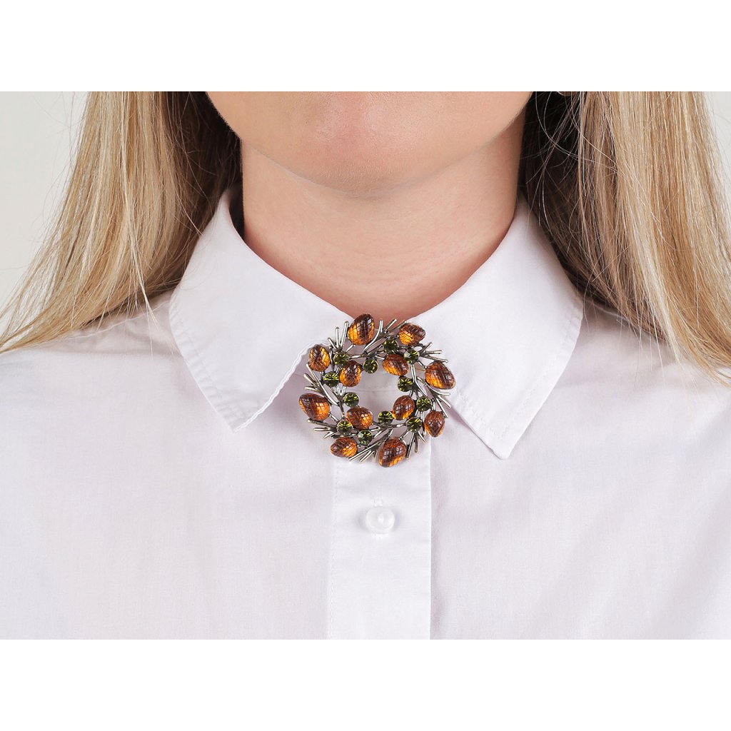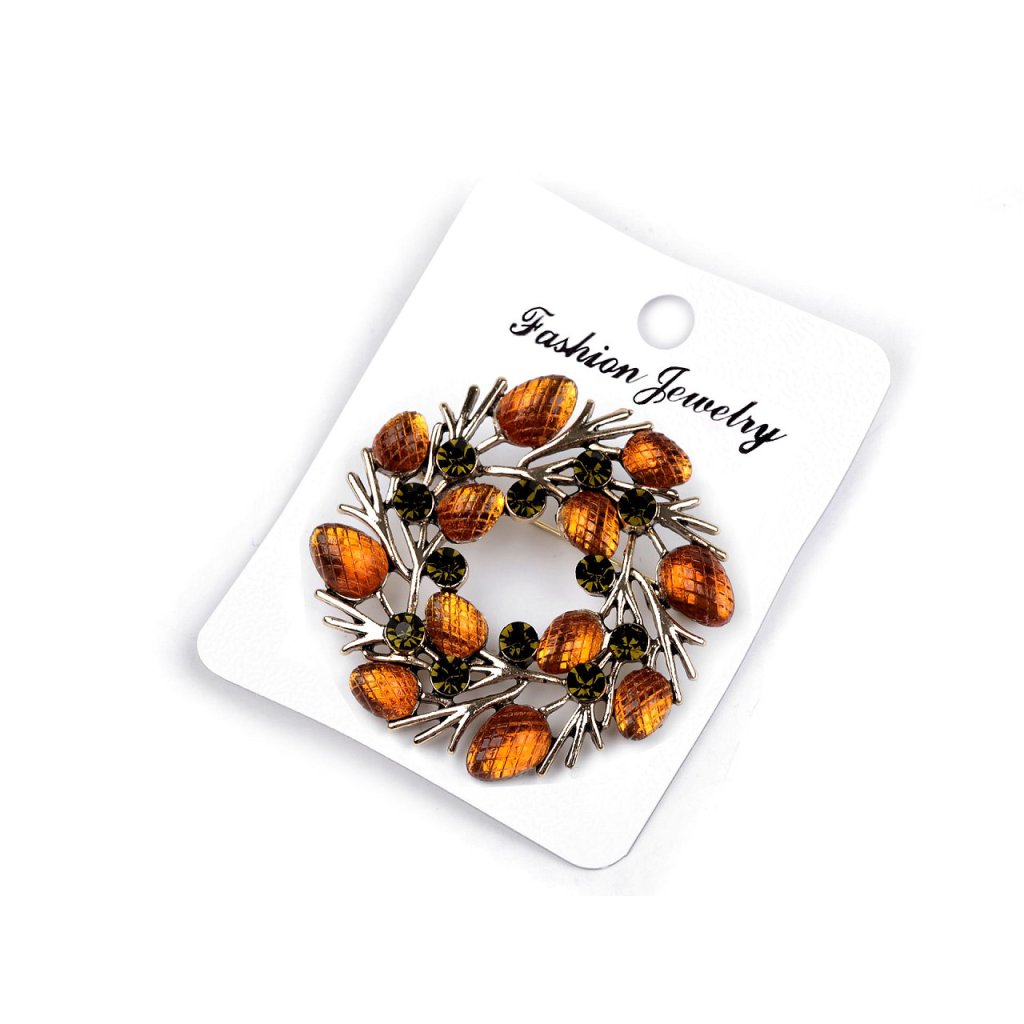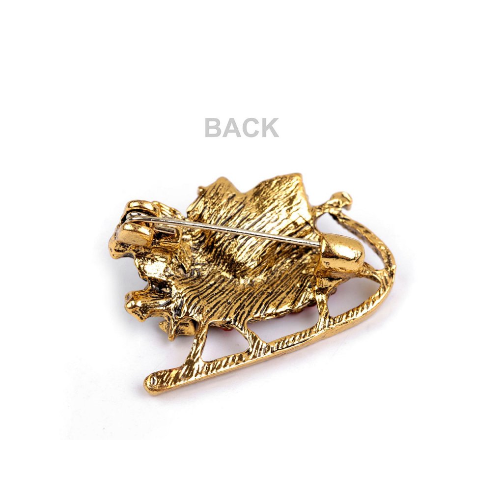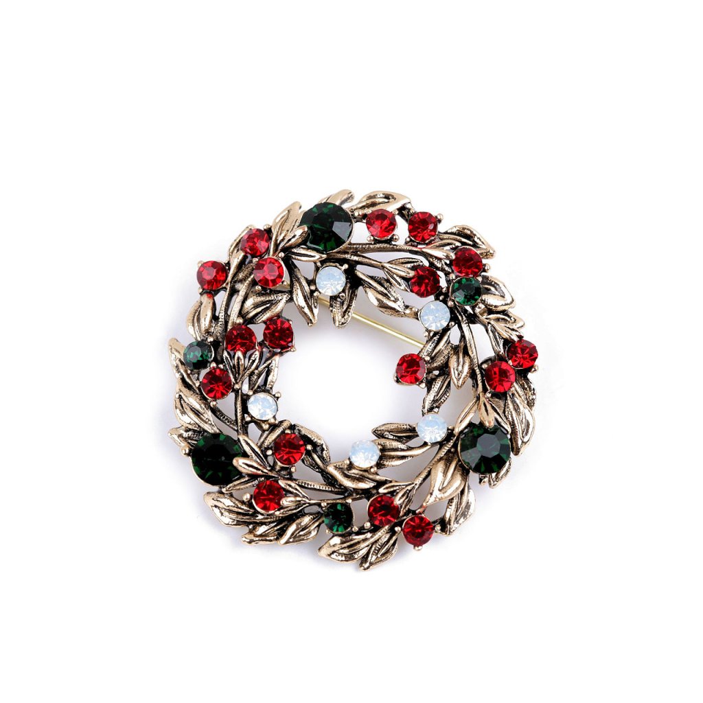 Eine elegante Weihnachtsbrosche wird eine interessante Ergänzung zu Ihrem Outfit sein. Dank der funkelnden geschliffenen Steine schmücken sie stilvoll Shirts, Jacken, Pullover, Handtaschen oder Hüte. Die Brosche hat auf der Rückseite eine Broschennadel . Es befindet sich auf einer Plastikkarte, die an den Verkaufsregalen aufgehängt werden kann.