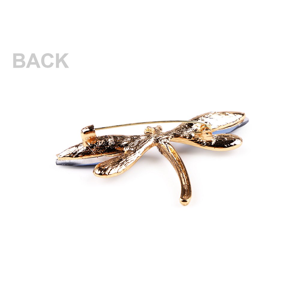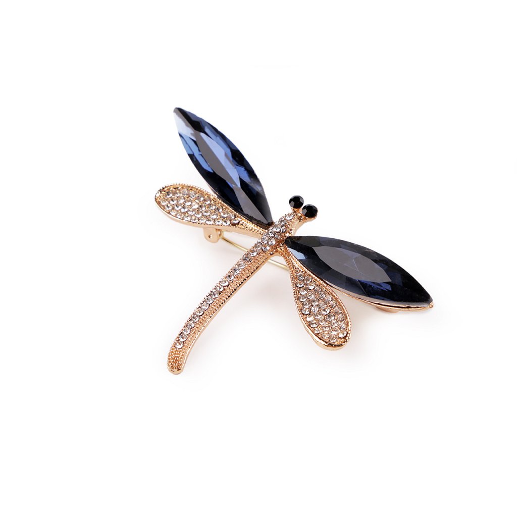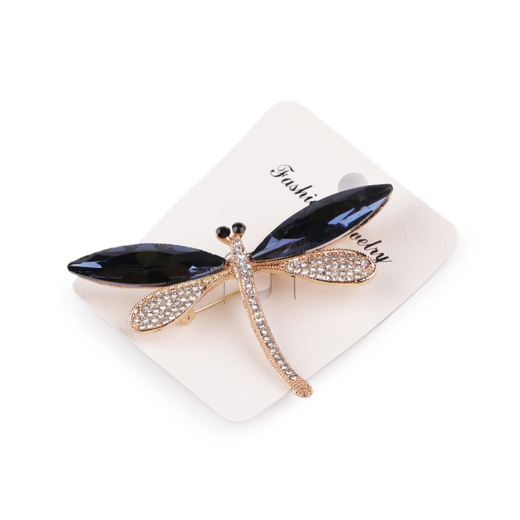 Die Brosche in Form einer Libelle sieht sehr elegant aus. Die Flügel aus geschliffenem Glas verleihen ihm eine geheimnisvolle Note. Dank kleiner Strasssteine funkelt es bezaubernd.