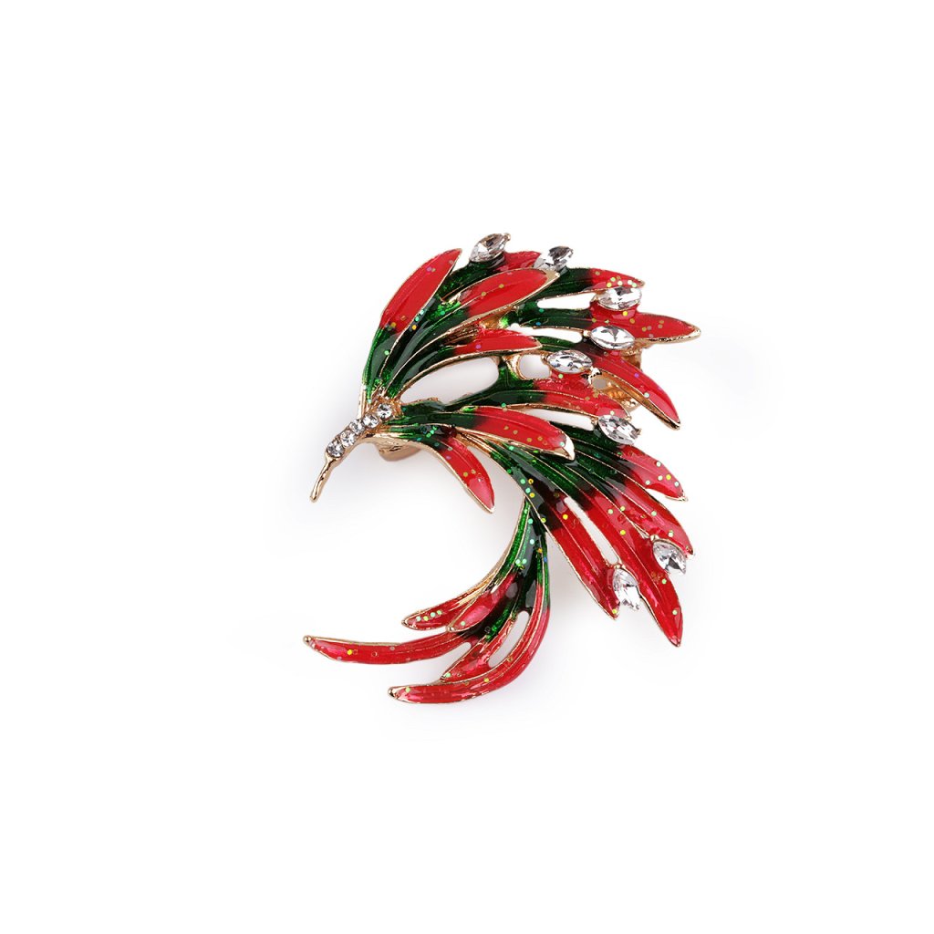 Die elegante Paradiesvogelbrosche ist ein charmantes Modeaccessoire, das mit ihrem einzigartigen Design sofort die Blicke auf sich zieht. Sie ist mit funkelnden, geschliffenen Steinen besetzt und mit farbiger Emaille mit leichtem Glitzer verziert. Sie eignet sich sowohl für den Alltag als auch für besondere Anlässe. Auf der Rückseite befindet sich eine Broschennadel. Es wirkt nicht nur auf Kleidung wirkungsvoll, sondern eignet sich auch zum Verzieren von Mützen, Taschen oder zum Binden von Schals. Die Brosche befindet sich auf einer Plastikkarte, die an Verkaufsständern aufgehängt werden kann.