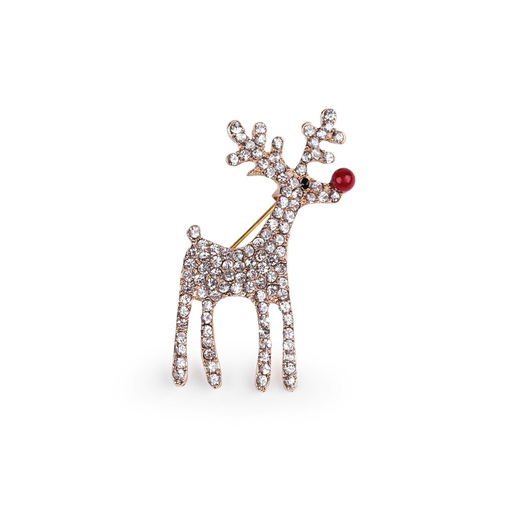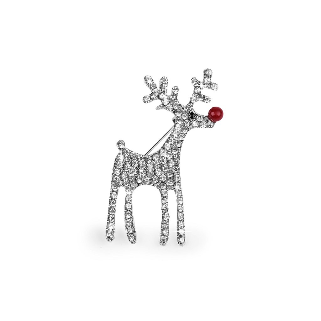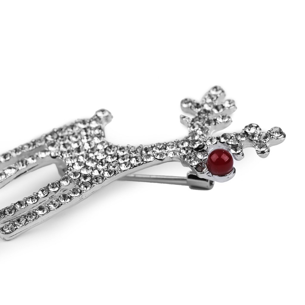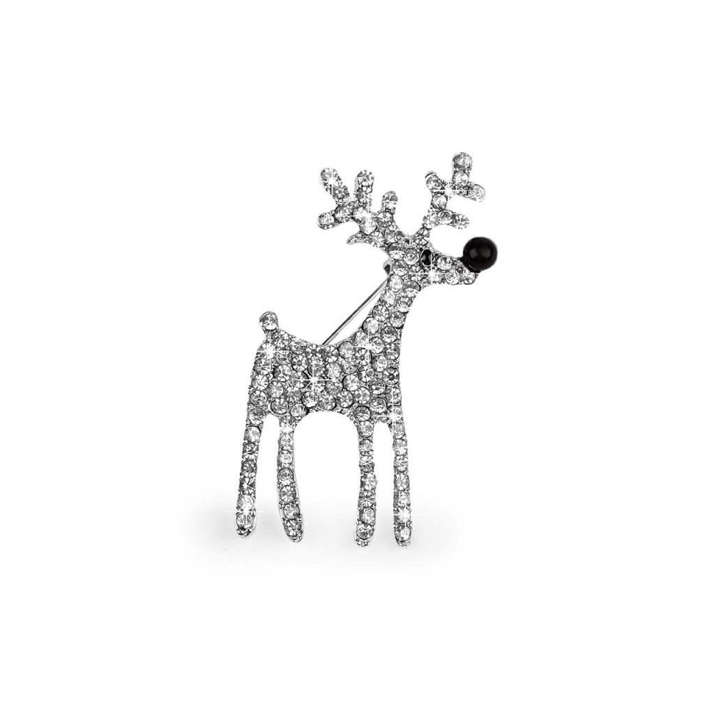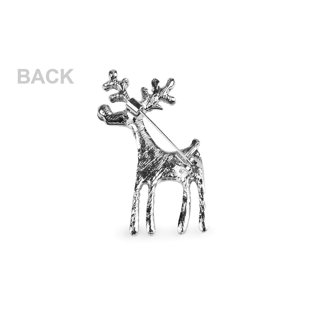 Eine elegante Brosche mit einem Rentier wird eine interessante Ergänzung zu Ihrem Outfit sein. Dank der funkelnden Schliffsteine schmücken sie Hemden, Jacken, Pullover, Handtaschen oder Mützen perfekt. Die Brosche hat auf der Rückseite eine Broschennadel und eine Sperre gegen Öffnen. Es befindet sich auf einer Plastikkarte, die an den Verkaufsständern aufgehängt werden kann.