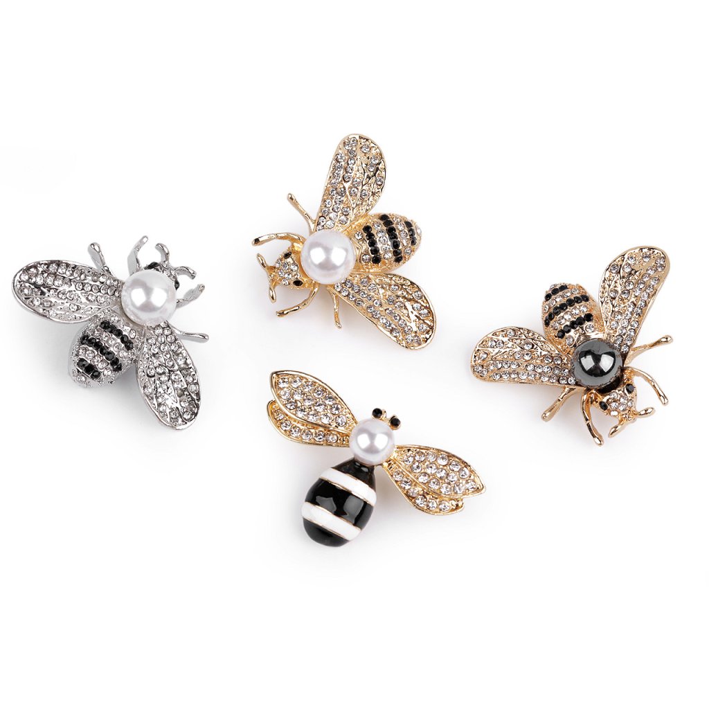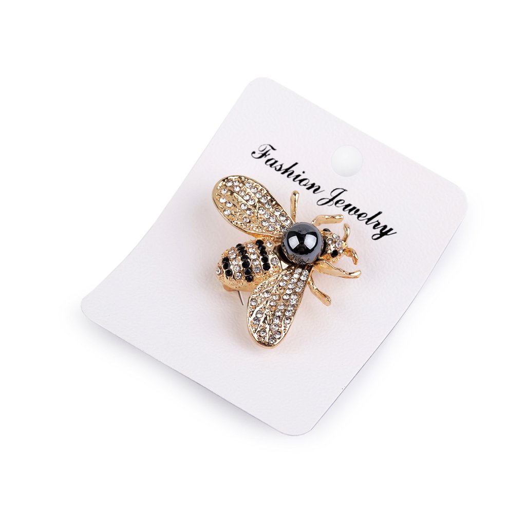 Die Bienenbrosche aus Metall ist mit Strasssteinen verziert, die ihr ein auffälliges Funkeln verleihen. In der Mitte befindet sich eine glänzende Perle . Passt eindrucksvoll zu Kleidung und Accessoires wie Handtaschen, Mützen, Schals usw. Wird mit einer Broschennadel befestigt. Die Broschen Nr. 1, 2 und 4 haben eine Schlaufe hinter dem Kopf, dank derer Sie die Biene an eine Halskette, ein Lederband usw. hängen können. Die Schlaufe misst ca. 4 mm. Die Brosche befindet sich auf einer Plastikkarte, die an den Verkaufsregalen aufgehängt werden kann.