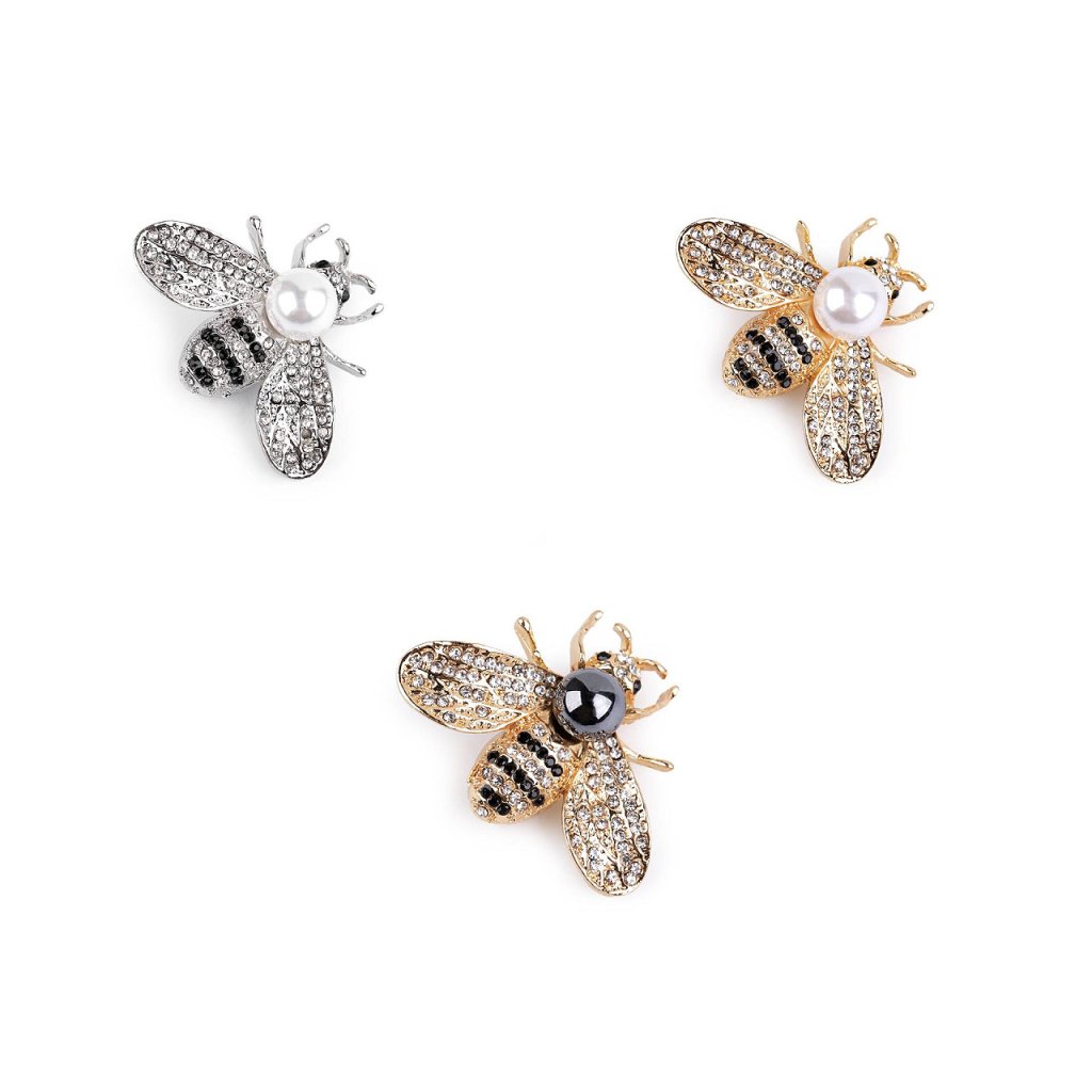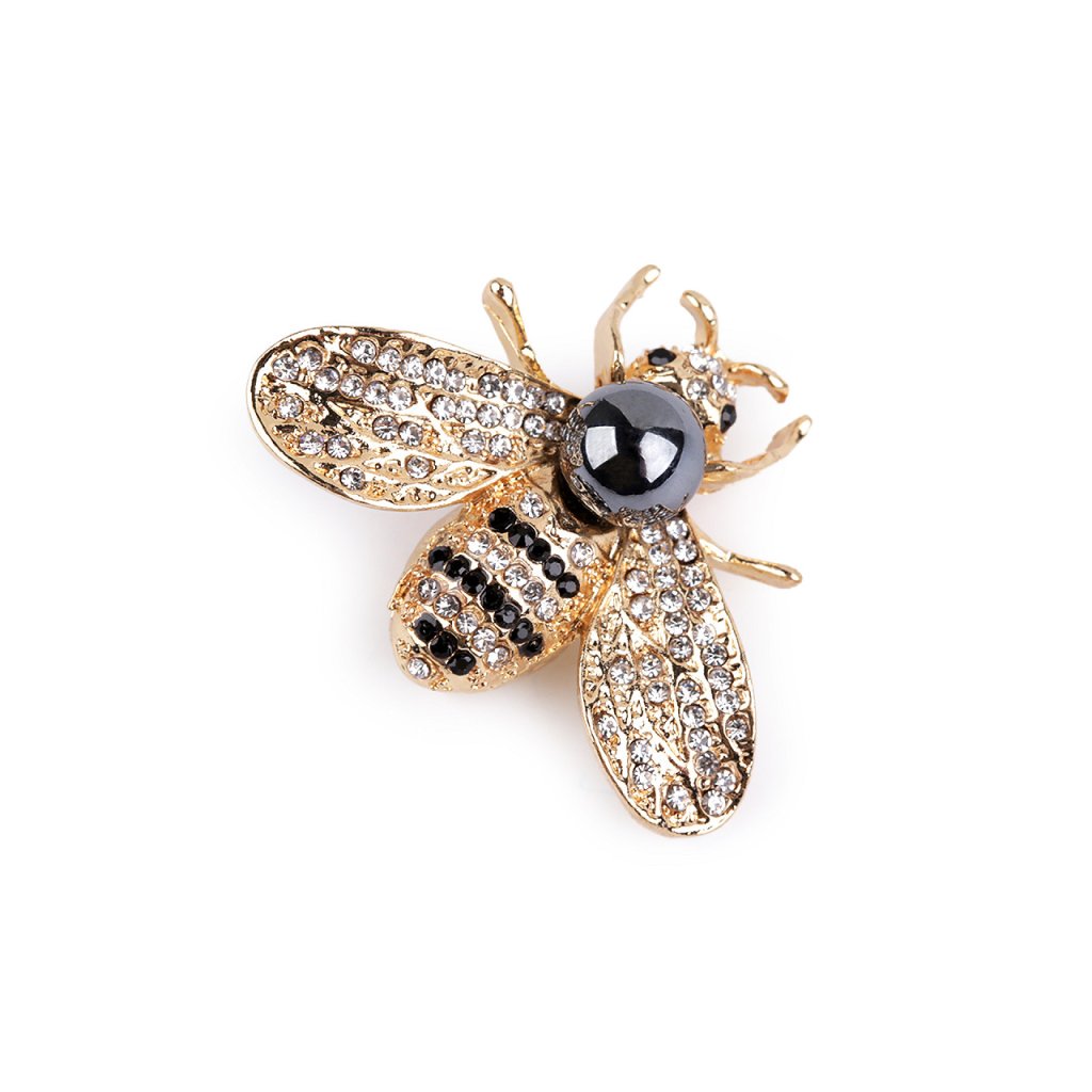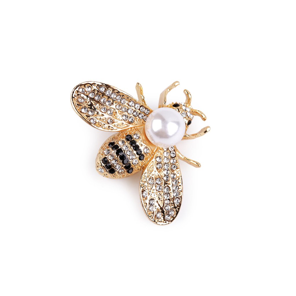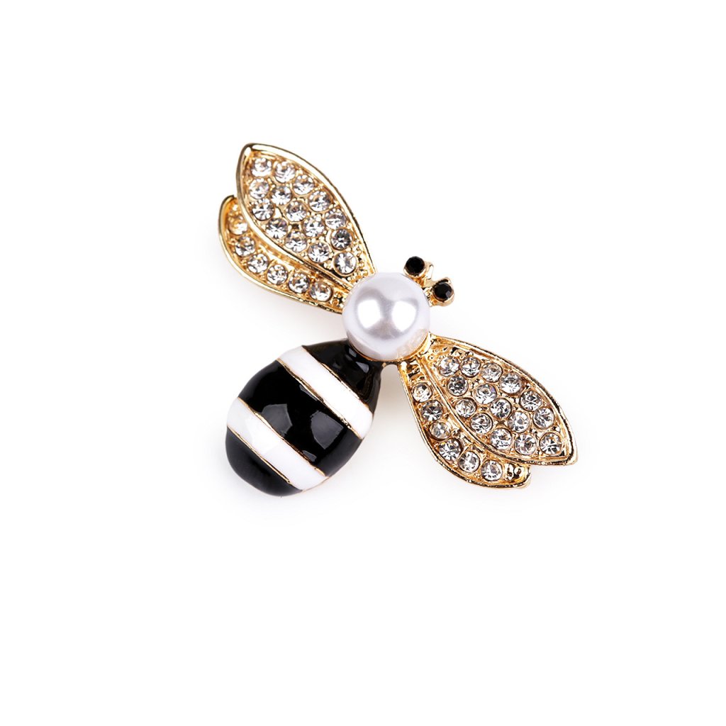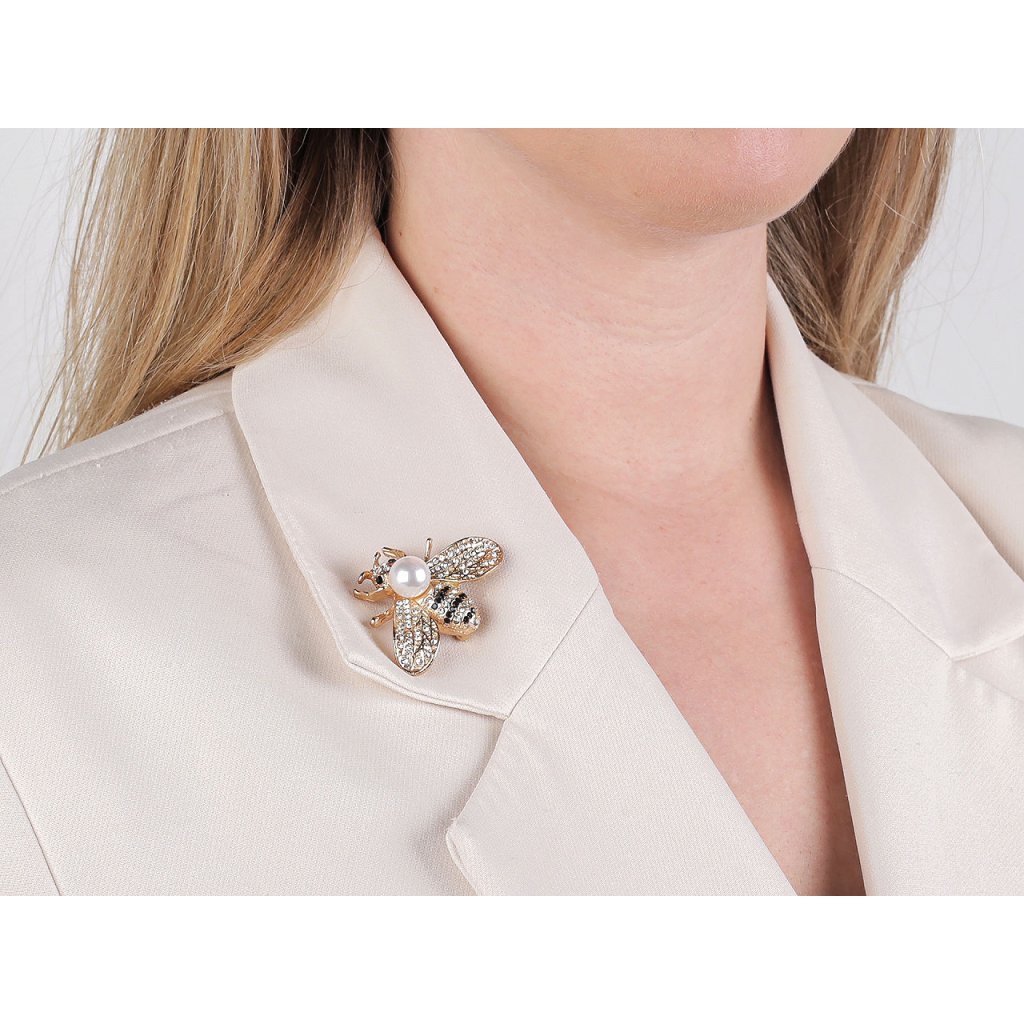 Brosche mit geschliffenen Steinchen und Perle Biene