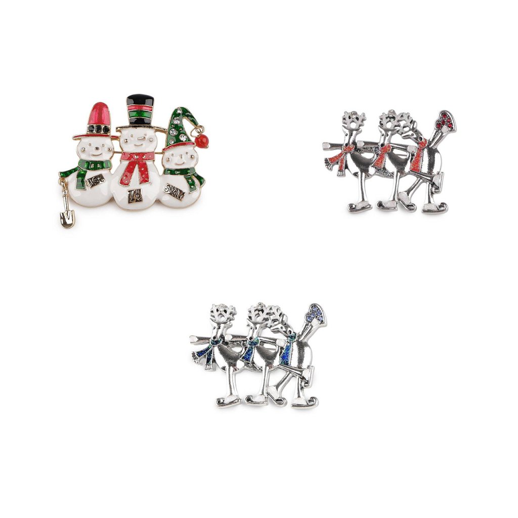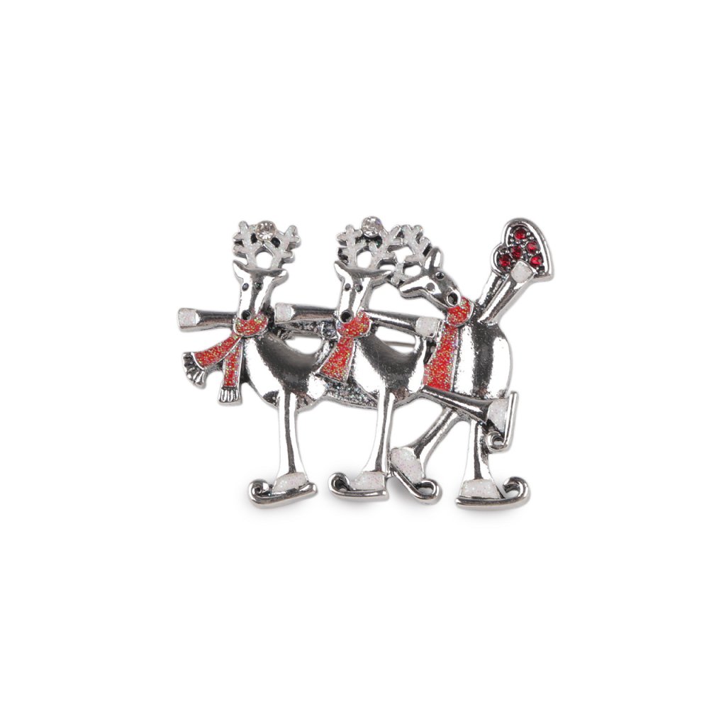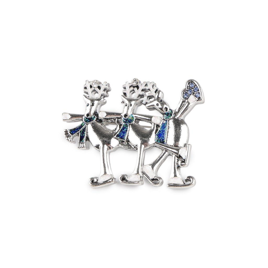 Brosche Rentiere auf Schlittschuhen, Schneemänner