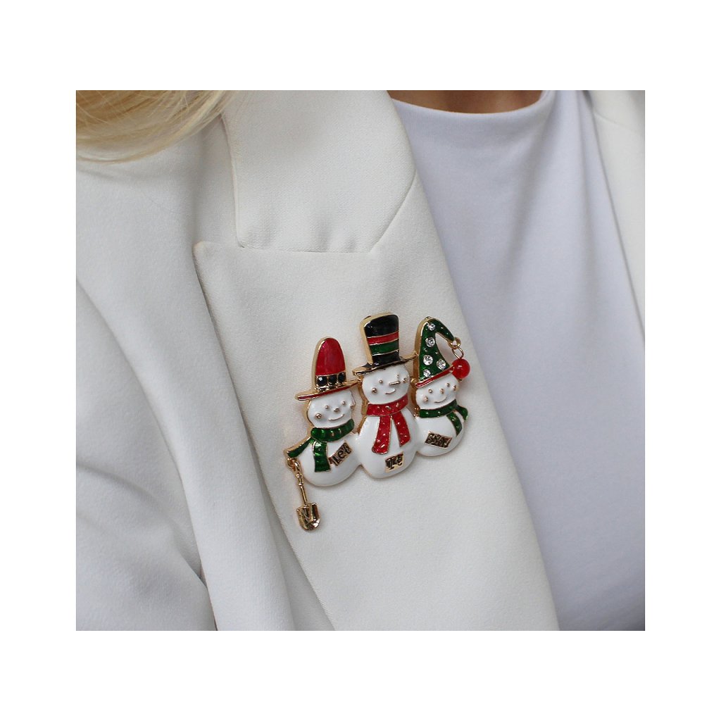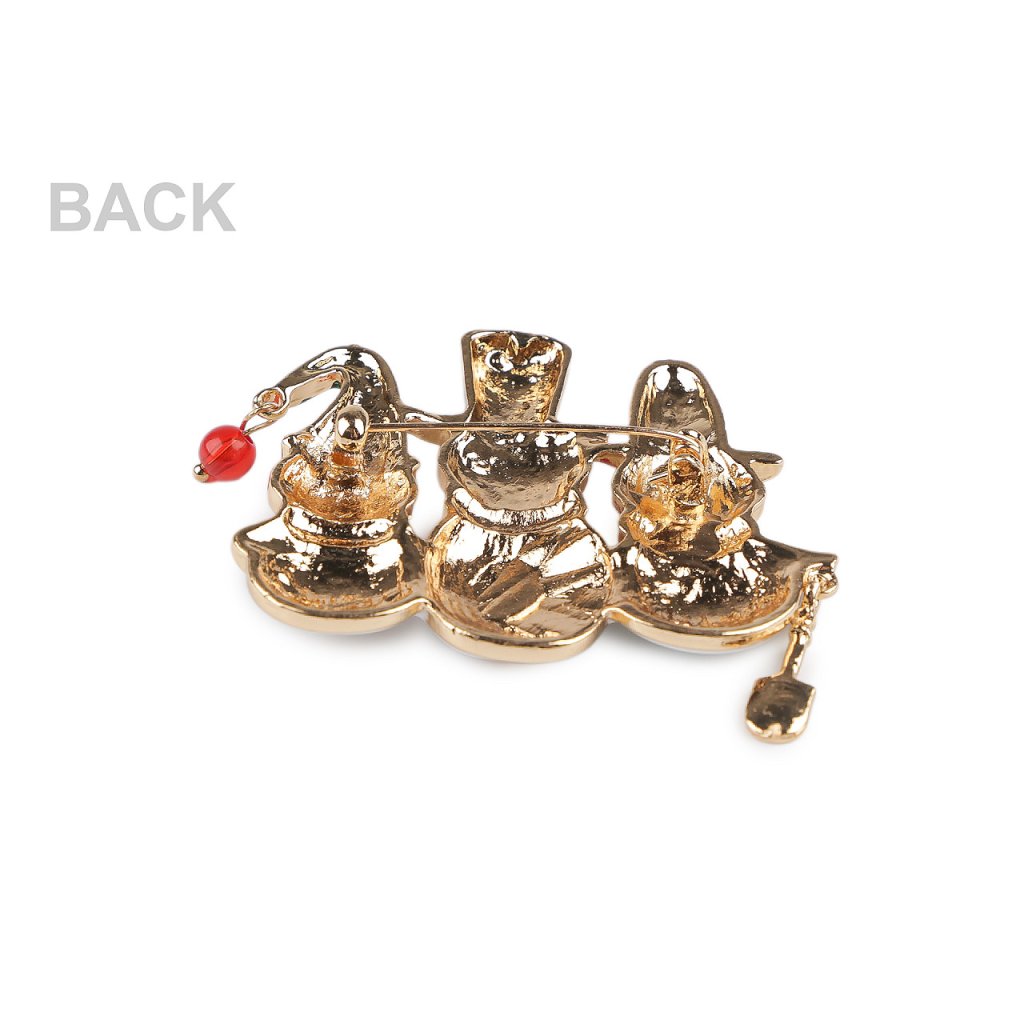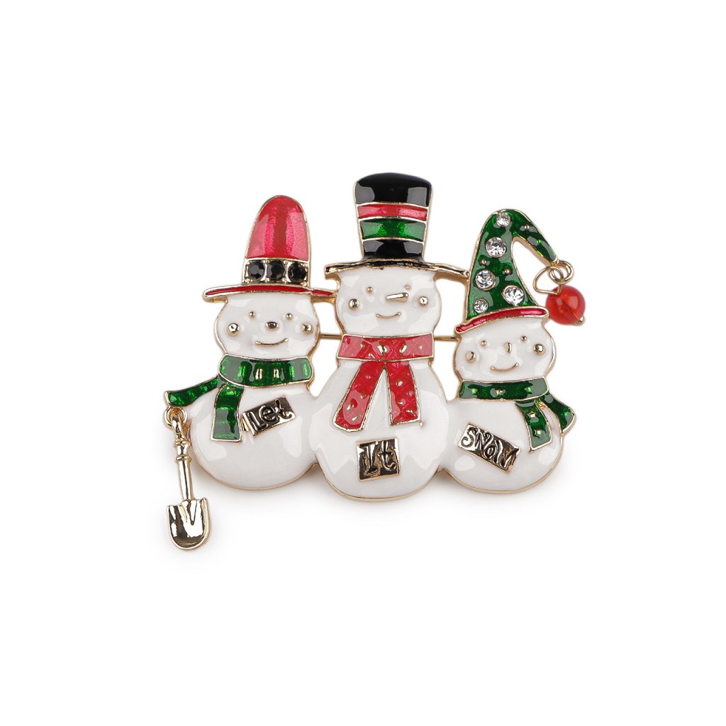 Brosche Rentiere auf Schlittschuhen, Schneemänner