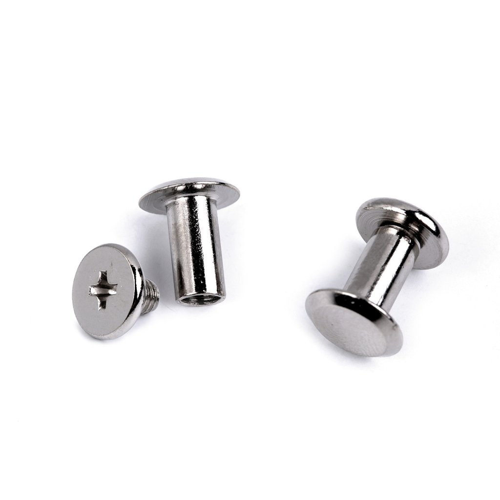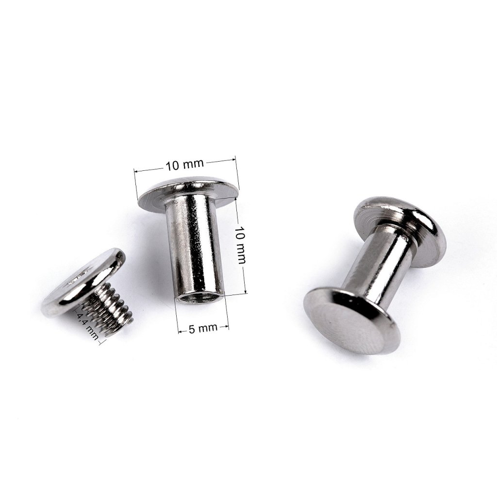 Die Metallniete besteht aus zwei Teilen , die Sie einfach zusammenschrauben. Die Nieten eignen sich zur Herstellung von Taschen, Handtaschen, Gürteln oder Filz- und Lederprodukten. Die Länge nach dem Einschrauben beider Teile beträgt 12,5 mm. Geeignet für Materialstärke 10 mm. Der Durchmesser des Schaftes beträgt 5 mm.