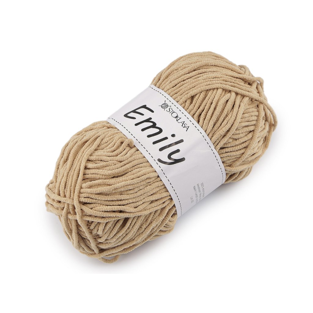 Emily Chenillegarn ist weich und fühlt sich angenehm an. Sie können damit warme Pullover, Schals, Mützen, Westen usw. stricken. Nadelstärke: 4,5; 5 Hakengröße: 4,5; 5 Wenn Sie das Garn zerreißen möchten, müssen Sie sehr vorsichtig vorgehen, um es nicht zu beschädigen. Wir empfehlen, vor dem Stricken/Häkeln eine Probe anzufertigen. Die Probe auf dem Foto (44 x 40 cm) wurde aus 1 Knäuel, Nadel Nr. 4,5, gestrickt.