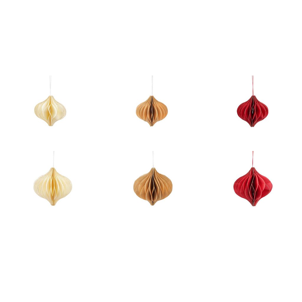 Die Hängedekoration besteht aus Wabenpapier , das beim Spannen einen Effekt erzeugt, der an Bienenwaben erinnert. Diese Papiersorte hat einen interessanten 3D-Effekt . Dank der Schlaufe können Sie das Ornament an einen Baum, an Zweige in einer Vase oder an einen Kranz hängen. Die Form hält dank der Magnete im Inneren perfekt . An den Rändern des Papiers befindet sich Glitzer . Die Varianten Nr. 1, 2, 3 haben einen Durchmesser von 9 cm und eine Höhe von 8,5 cm. Die Varianten Nr. 4, 5, 6 haben einen Durchmesser von 10 cm und eine Höhe von 10 cm.
