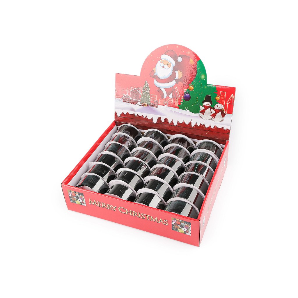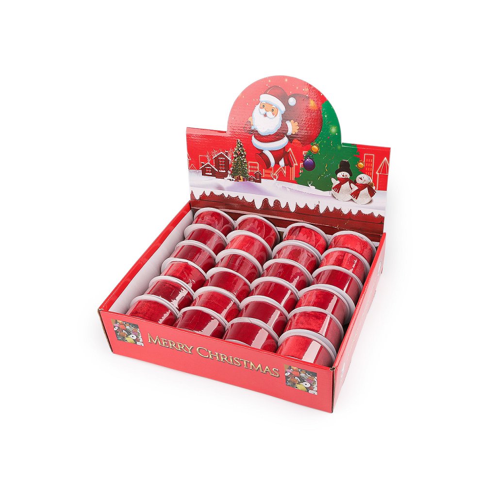 Das breitere Samtband fühlt sich angenehm und weich an. Sie können es für Weihnachtsschleifen, Kränze und zur Dekoration festlicher Tische und Stühle verwenden. Es eignet sich auch hervorragend für Blumenarrangements. Es wird auch gerne zum Verpacken von Geschenken verwendet. Es ist auf einer praktischen Spule aufgewickelt, was die Handhabung und Aufbewahrung erleichtert. Die Großpackung mit 24 Spulen ist in einer weihnachtlich bedruckten Papierbox verpackt, die sich gut zur Präsentation auf der Verkaufstheke eignet. Die Maße betragen 27 x 33 x 8 cm.