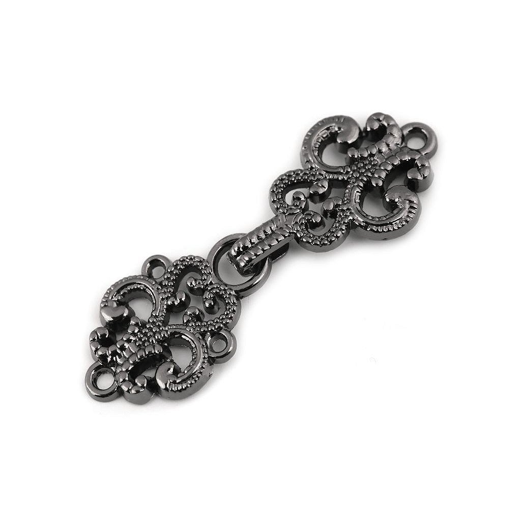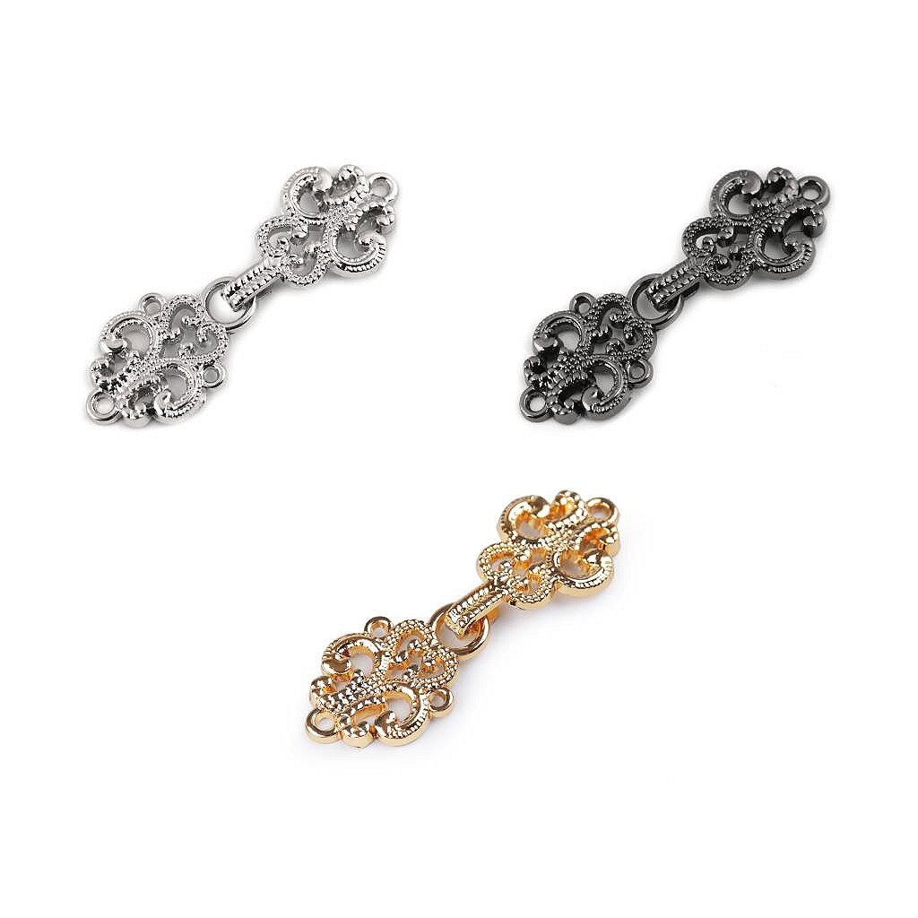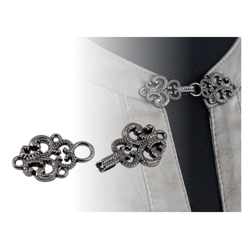 Dekorative Filigranverschlüsse können an Strickjacken, Pullovern, Boleros, Westen und Jacken angebracht werden. Sie bestehen aus Haken und Öse. Muss angenäht werden. Auch zur Umfangsreduzierung bei Hosen oder Röcken ist er interessant einsetzbar.
