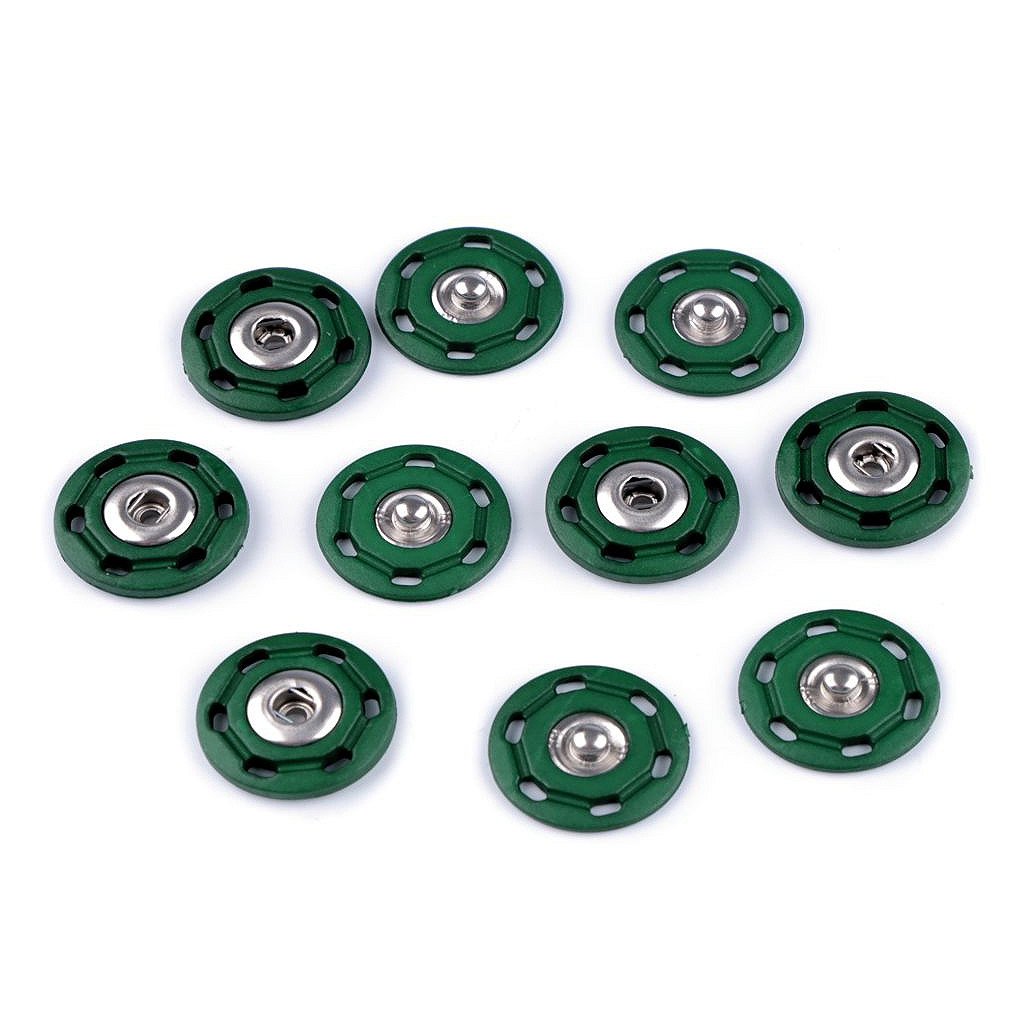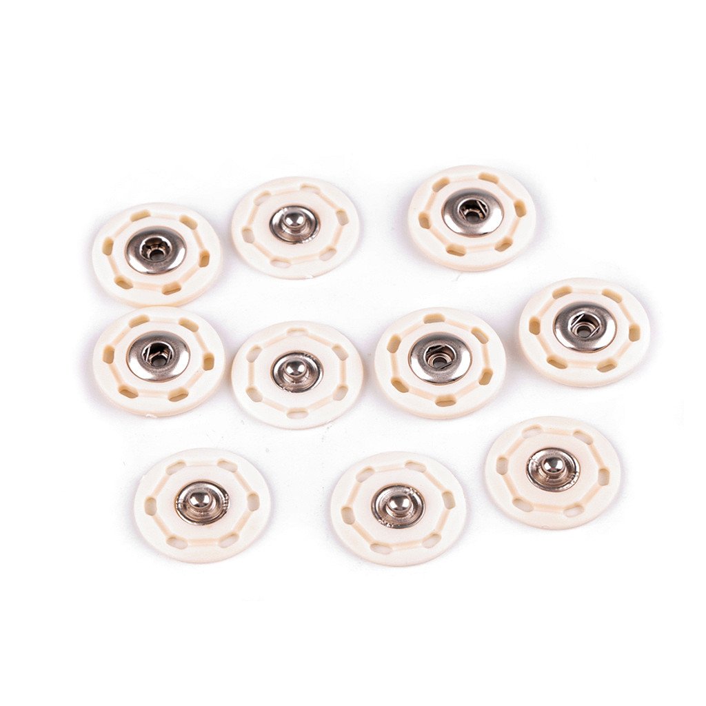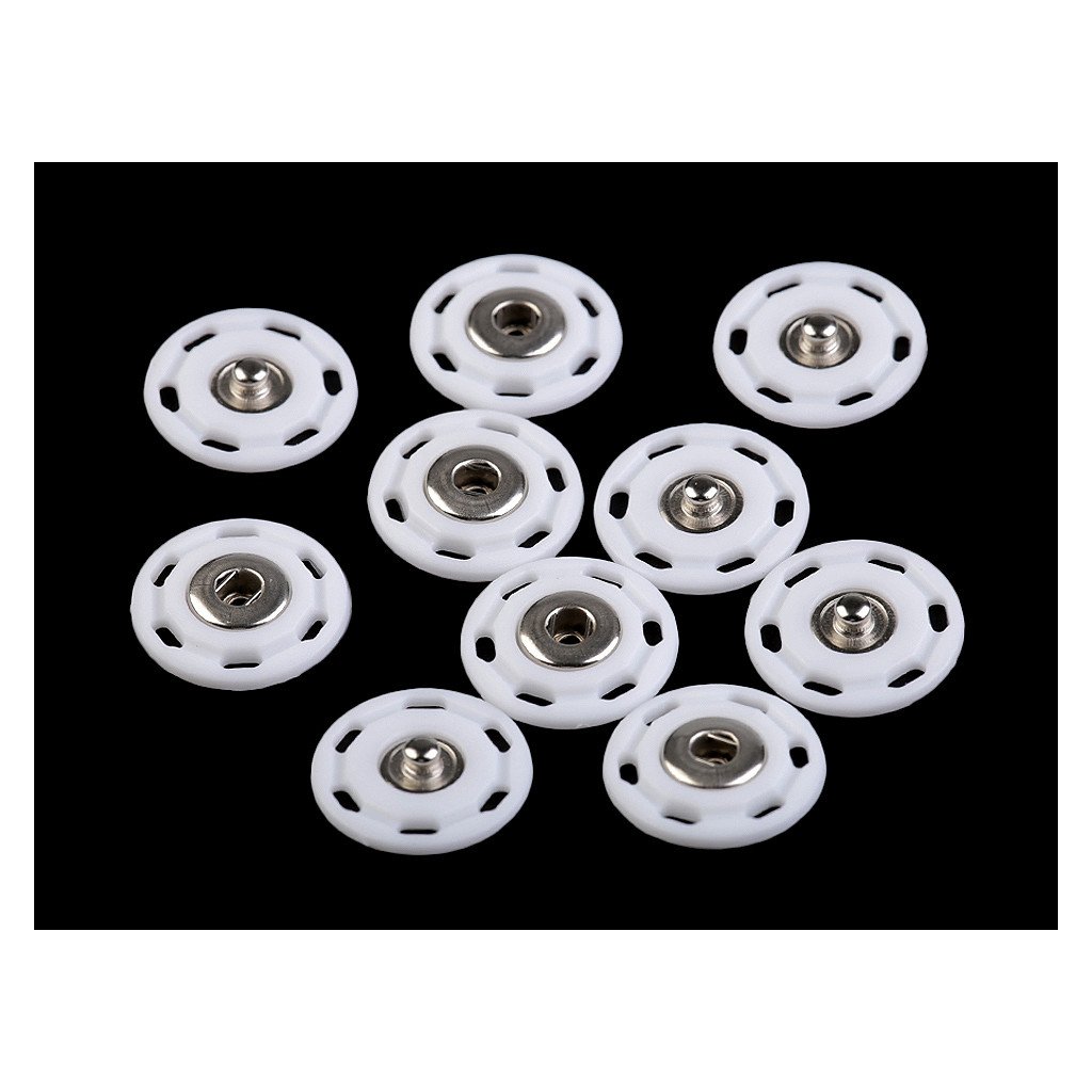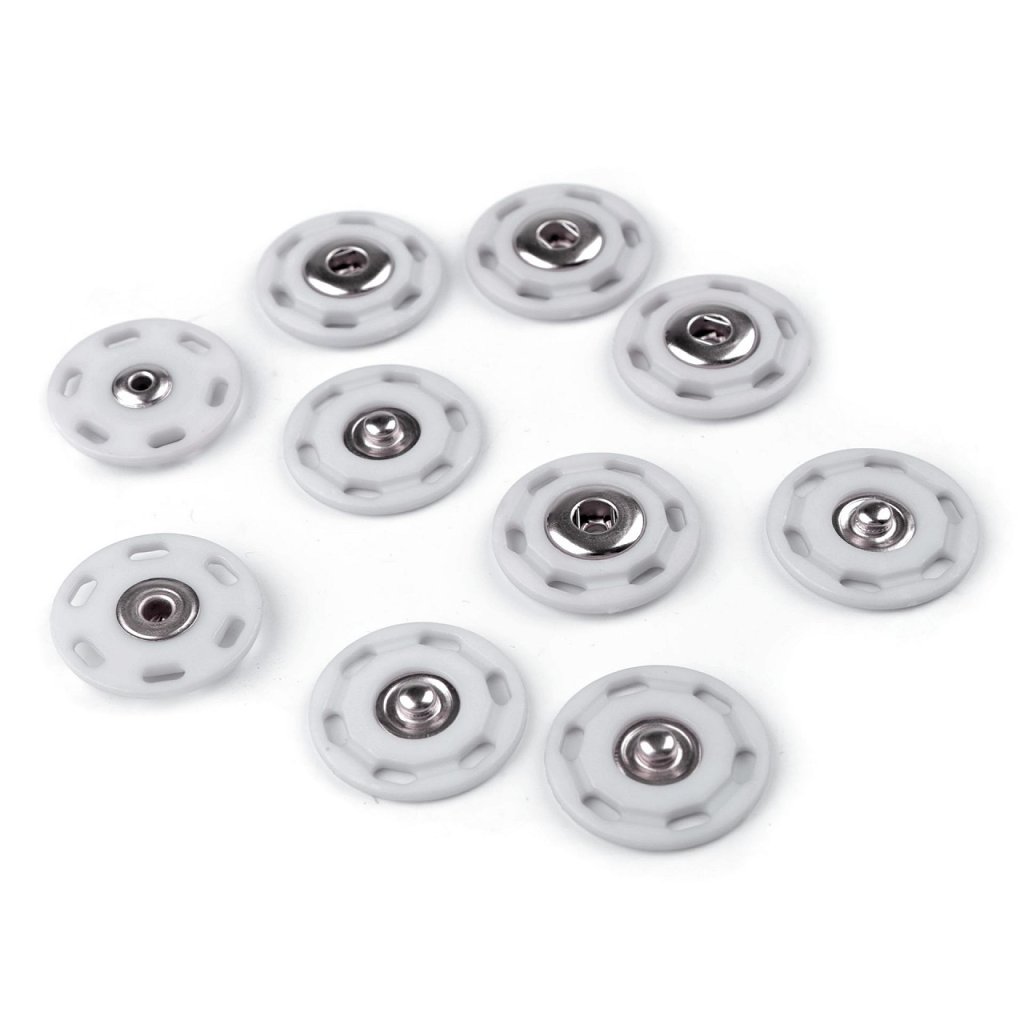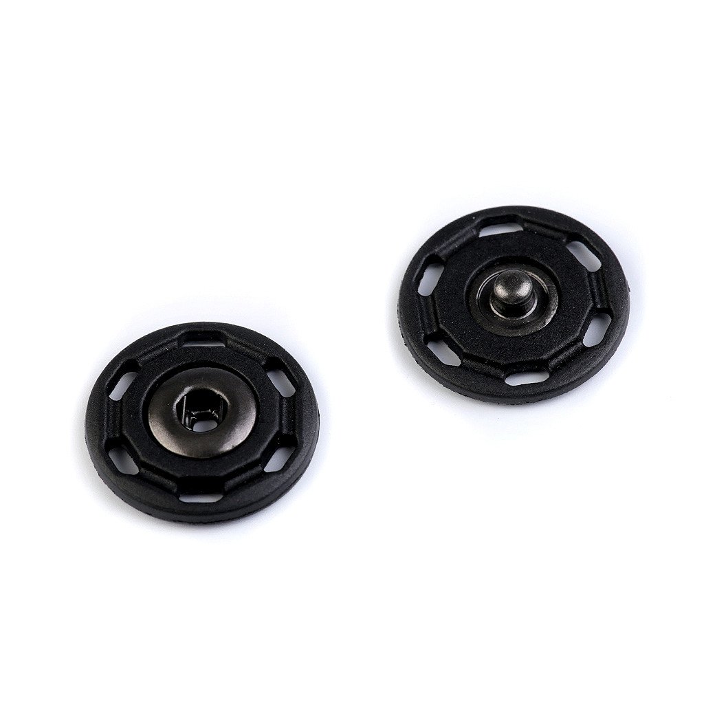 Kunststoff-Druckknöpfe als Verschluss für Taschen, Mäntel, Jacken oder Sweatshirts aufnähen. Die Kanten sind mit Löchern ausgekleidet, durch die Sie bequem nähen können.