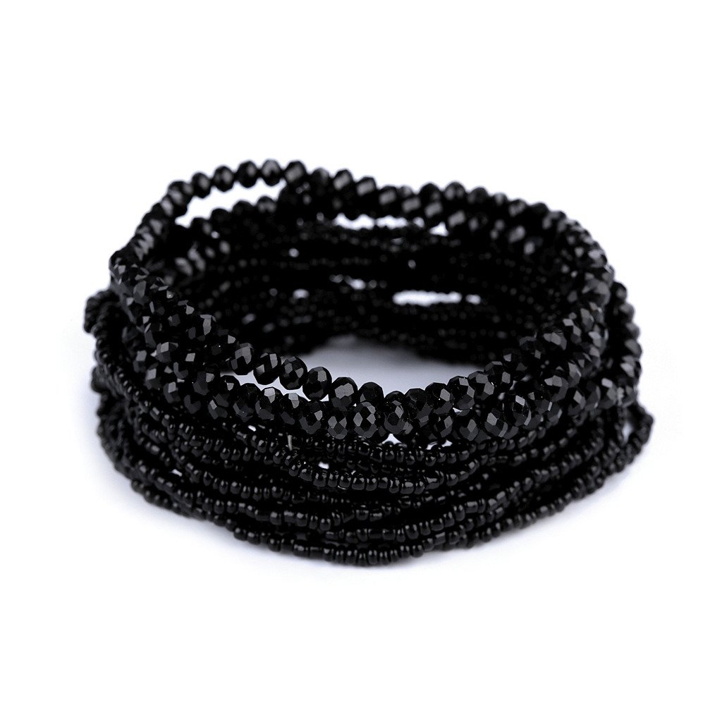 Eine Reihe eleganter Armbänder im Metallic-Look . Sie können sie alle auf einmal tragen oder separat verwenden. Die Armbänder sind flexibel und bestehen aus geschnittenen Perlen und Rocailles, die glänzen und funkeln . Dank der Elastizität liegen sie gut auf der Hand . Es gibt 18 Armbänder in einem Set. Die Breite des gesamten Sets beträgt ca. 6 cm. Set Nr. 4 - schwarz - kein metallischer Glanz.