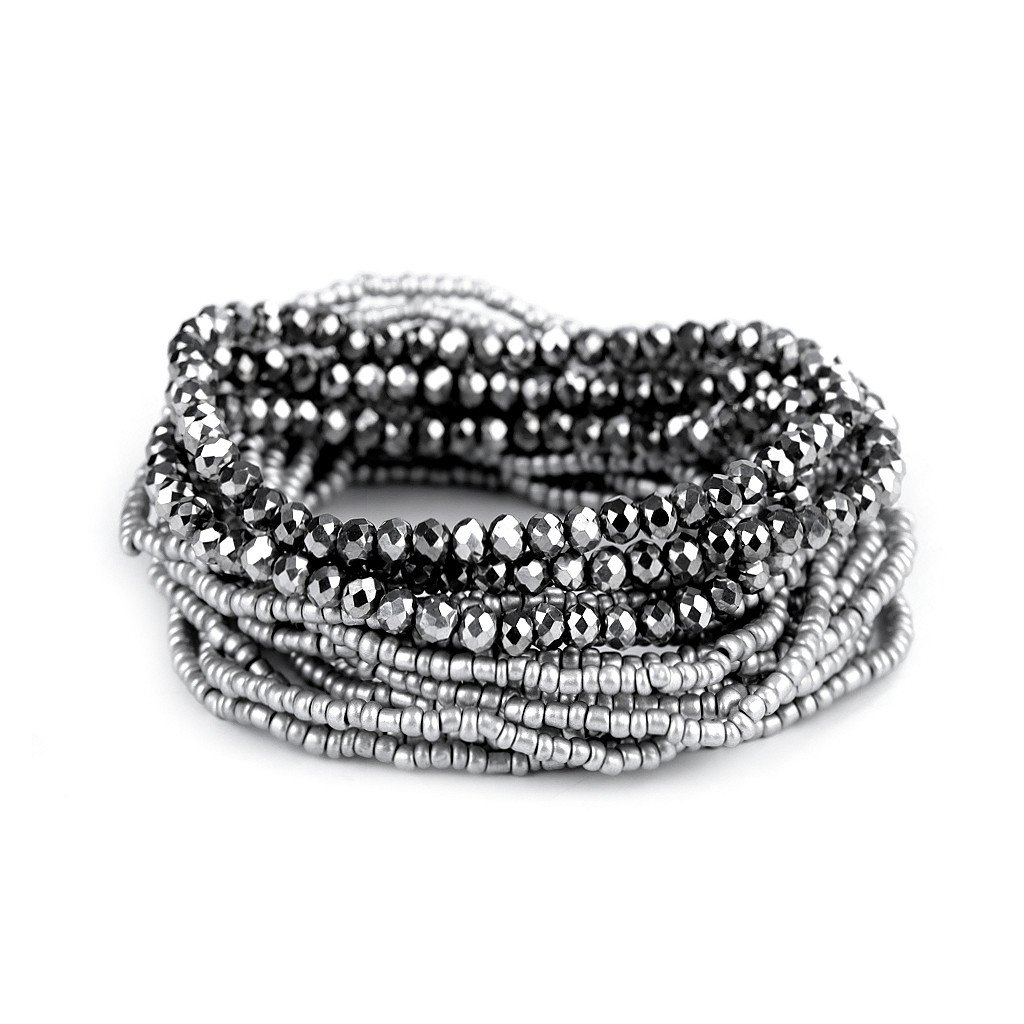 Elastische Armbänder mit Rocailles und geschliffenen Perlen - 18 Stk. Set