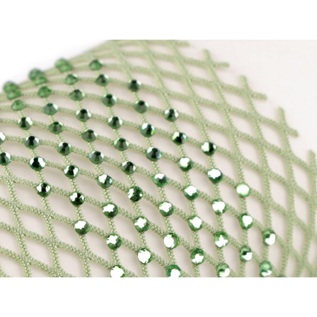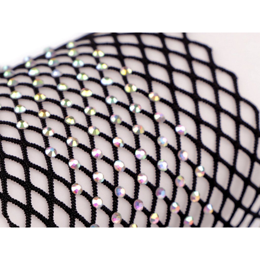 Elastisches Netz mit Strasssteinen ist sehr auffällig und elegant. Dank des Elasthans ist das Netz perfekt flexibel . Es eignet sich hervorragend zum Nähen und Verzieren exklusiver Modelle von T-Shirts, Kleidern, Röcken, Blusen usw. Es wird auch gerne zum Nähen von Sport- und Tanzkostümen und Trikots verwendet. Es federt in alle Richtungen und franst außerdem nicht aus – die Kanten müssen nicht gesäumt werden. Die Löcher im Geflecht haben die Maße 4 x 6 mm. Die Breite der gesamten Masche beträgt 7,5 cm, der Teil mit Steinen ist 3,7 cm breit.