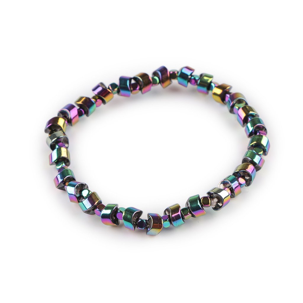 Das elegante Armband besteht aus verschieden geformten Perlen aus plattiertem Hämatit . Dank des elastischen Bandes lässt sich das Armband leicht um die Hand spannen und hat eine universelle Größe . Das Hämatitarmband ist eines der Schmuckstücke, das dank seiner faszinierenden Oberflächenbeschaffenheit auf den ersten Blick ins Auge fällt . Das Armband wird jede Frau begeistern, es ist ein Geschenk, das Sie nicht bereuen werden.