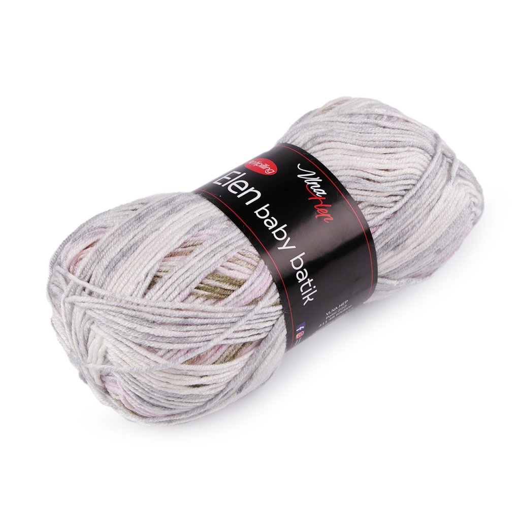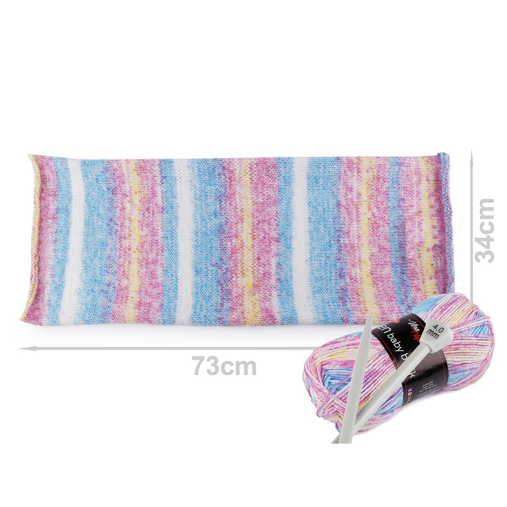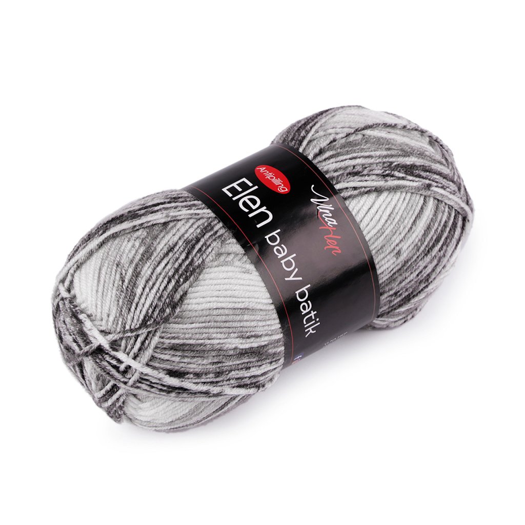 Elen Baby-Batik-Strickgarn hat ein interessantes meliertes Design , das all Ihren Produkten ein attraktives Aussehen verleiht. Dank der Anti-Pilling-Behandlung müssen Sie sich keine Sorgen über Pilling machen. Das Garn ist weich und fühlt sich angenehm an. Es eignet sich zum Stricken von Pullovern, Mützen, Schals, Krawatten und Kindersachen. Nadelstärke: 3,5 - 4,5 Hakengröße: 3,5 - 4,5. Das Muster auf dem Foto (73 x 34 cm) wurde mit 1 Knäuel auf Nadelstärke 4 mm gestrickt.