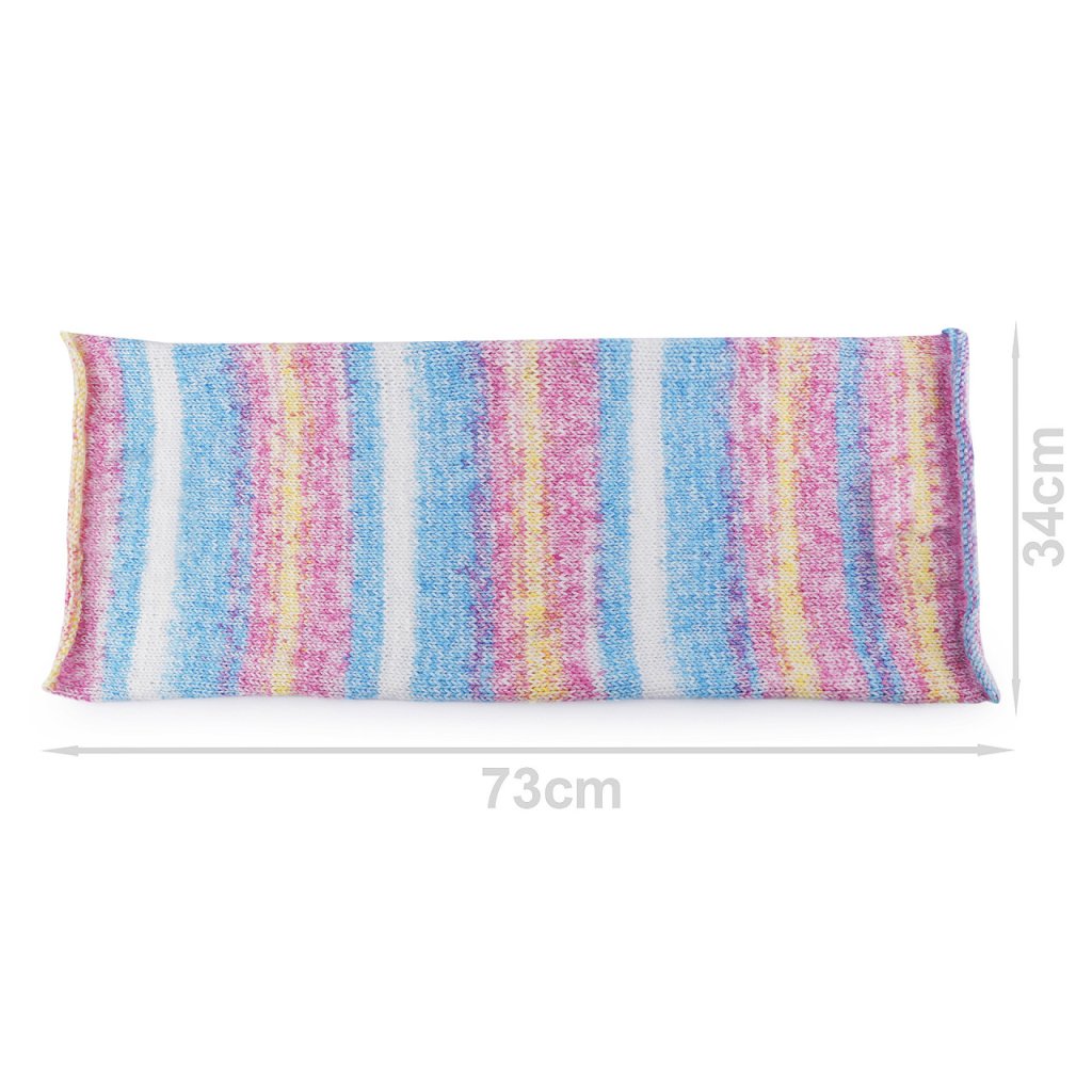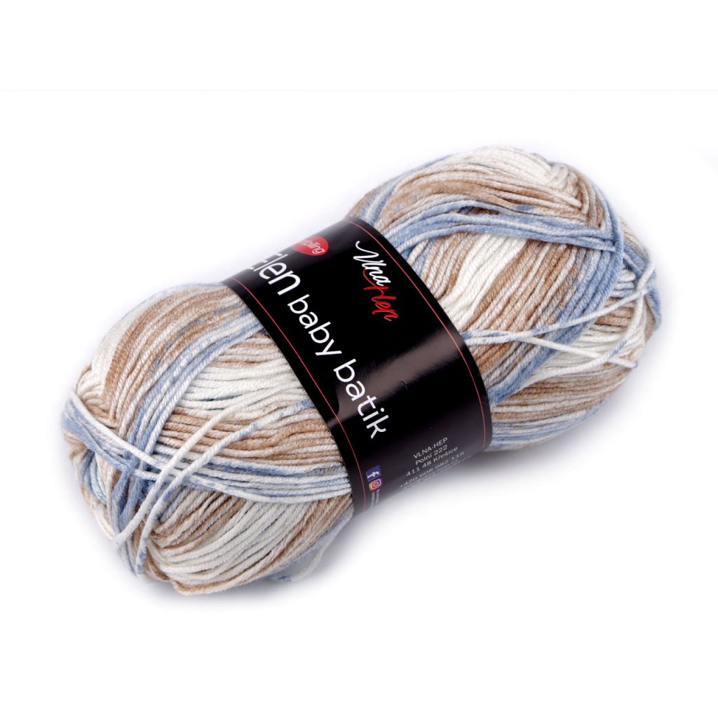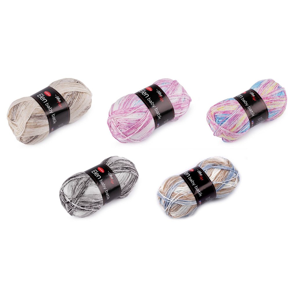 Elen Baby-Batik-Strickgarn hat ein interessantes meliertes Design , das all Ihren Produkten ein attraktives Aussehen verleiht. Dank der Anti-Pilling-Behandlung müssen Sie sich keine Sorgen über Pilling machen. Das Garn ist weich und fühlt sich angenehm an. Es eignet sich zum Stricken von Pullovern, Mützen, Schals, Krawatten und Kindersachen. Nadelstärke: 3,5 - 4,5 Hakengröße: 3,5 - 4,5. Das Muster auf dem Foto (73 x 34 cm) wurde mit 1 Knäuel auf Nadelstärke 4 mm gestrickt.