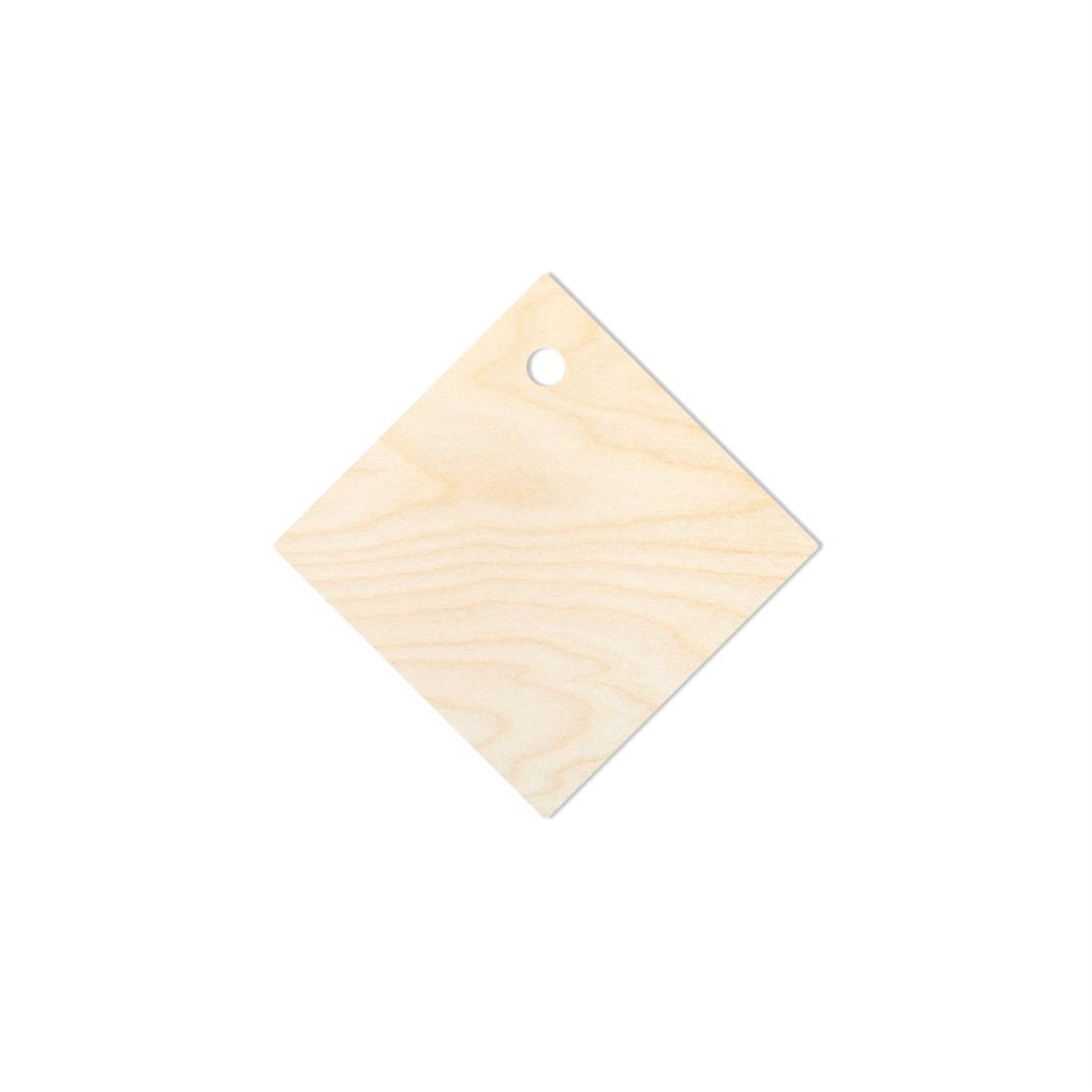 Etikett in Form einer Raute in der Größe von 5 x 5 cm aus Birkensperrholz mit einer Dicke von 3 mm geschnitten. Das Loch ist 5 mm groß. Das Produkt ist unbearbeitet und eignet sich zur weiteren Verzierung von Fertigprodukten oder als Dekoration. Wir empfehlen die Verwendung von Acrylfarben zum Malen.