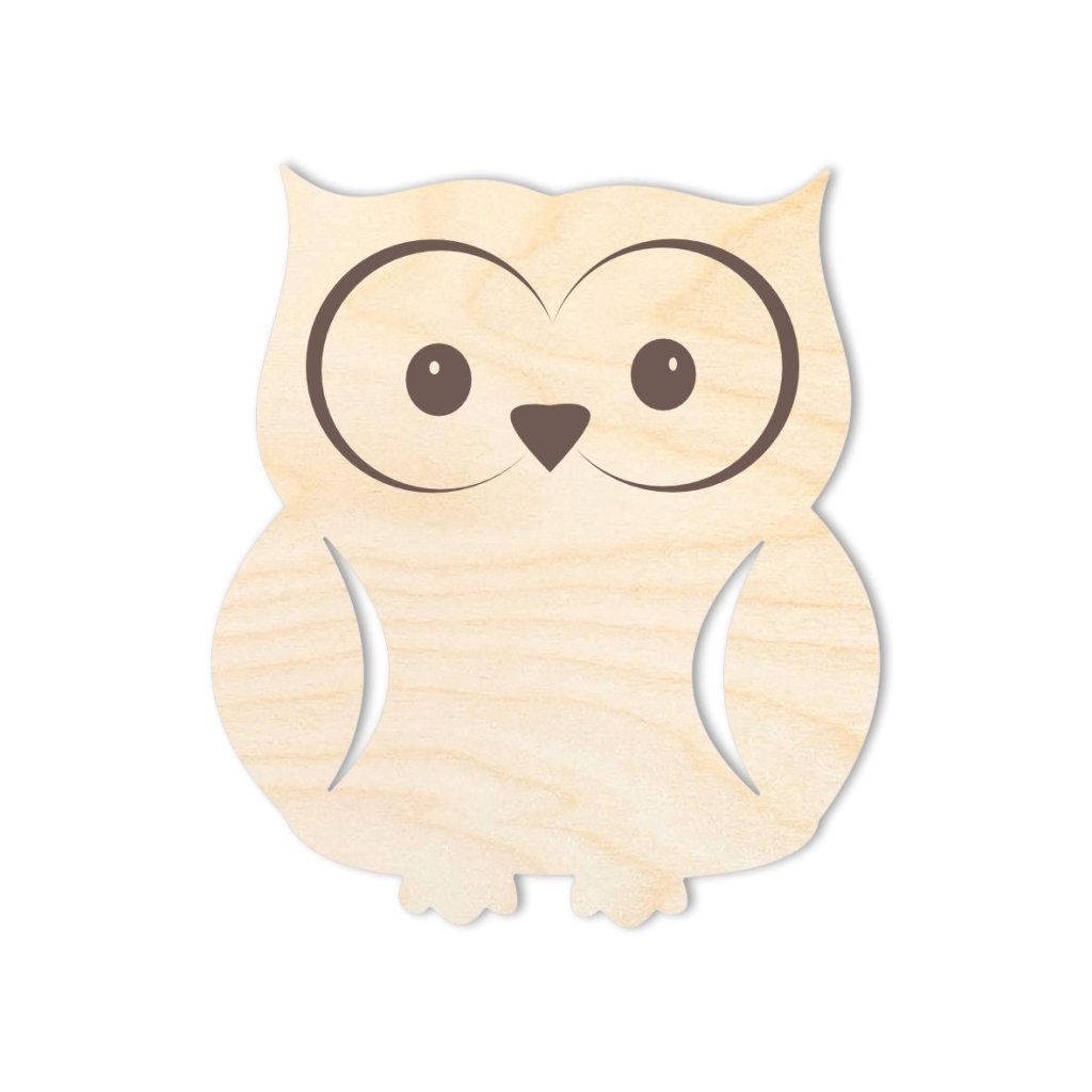Hölzerne Eule in der Größe 4 x 3,5 cm, geschnitzt aus 3 mm dickem Birkensperrholz. Das Produkt eignet sich zur weiteren Dekoration von Fertigprodukten oder als Weihnachtsdekoration. Wir empfehlen die Verwendung von Acrylfarben zum Malen.
