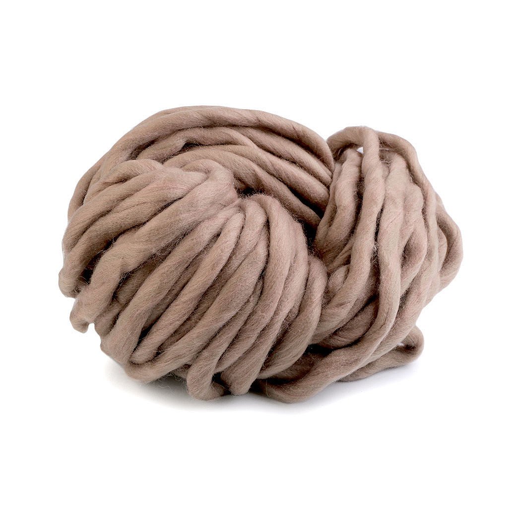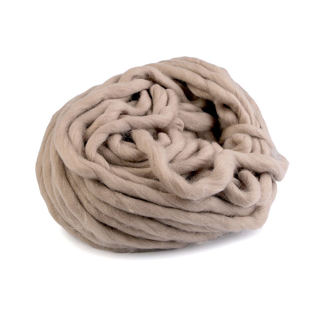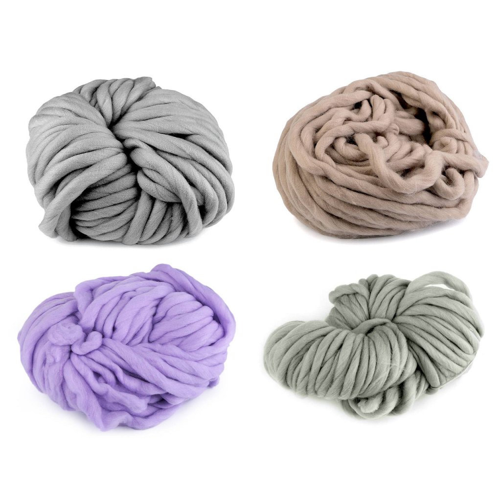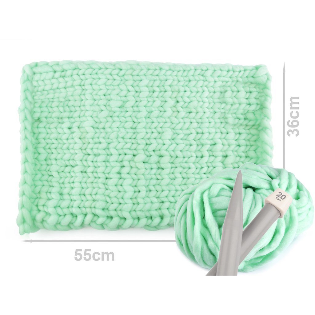 Ein leichtes Garn zum Stricken oder Häkeln wird alle kreativen Menschen begeistern, die gerne mit interessanten Materialien arbeiten. Wird für Riesenstrickwaren verwendet, die mit der Hand oder auf großen Nadeln gestrickt werden. Aus dem Garn fertigen Sie Decken, Plaids, weiche Schals, Tagesdecken usw. Für das Stricken von ca. 70 x 100 cm werden bei Nadel Nr. 20 5 Stück Garn benötigt. Das Garn kann Fasern verlieren – das ist natürlich und stellt keine Fehlfunktion dar. Nach dem ersten Waschen des Strickartikels bei möglichst niedriger Temperatur und sanftem Auspressen werden die Fasern verbunden und verfestigt. Das Garn verändert leicht seine Struktur. Das Muster auf dem Foto (55 x 36 cm) wurde mit 1 Knäuel und Stricknadeln der Stärke 20 mm gestrickt. Dunklere Farben können leicht abfärben.