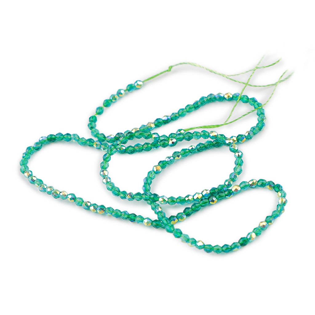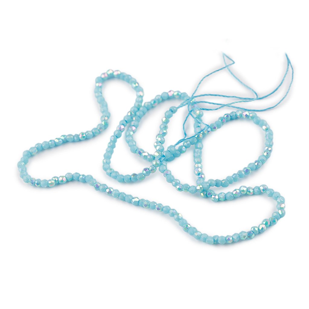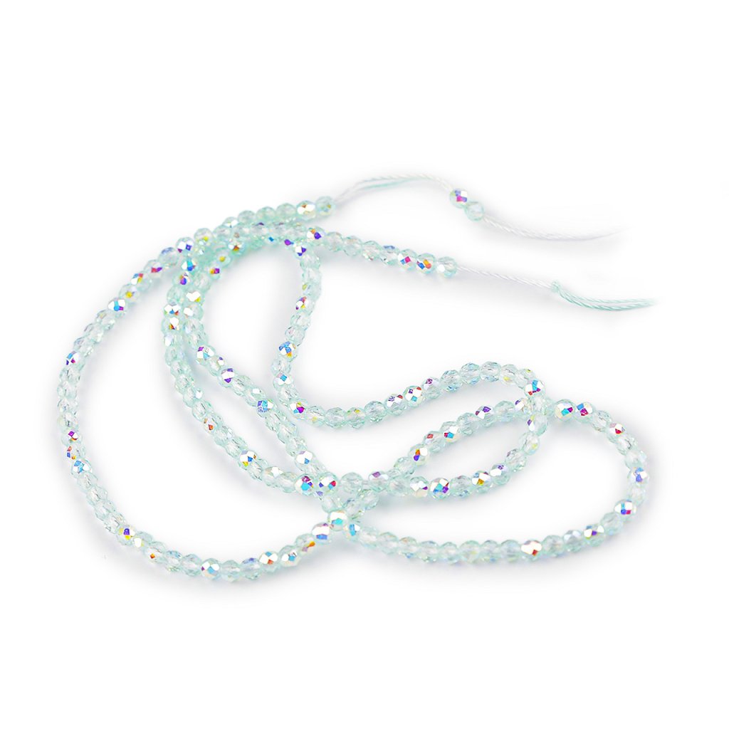 Feuerpolierte, geschliffene Glasperlen mit AB-Effekt auf Schnur, 2 mm