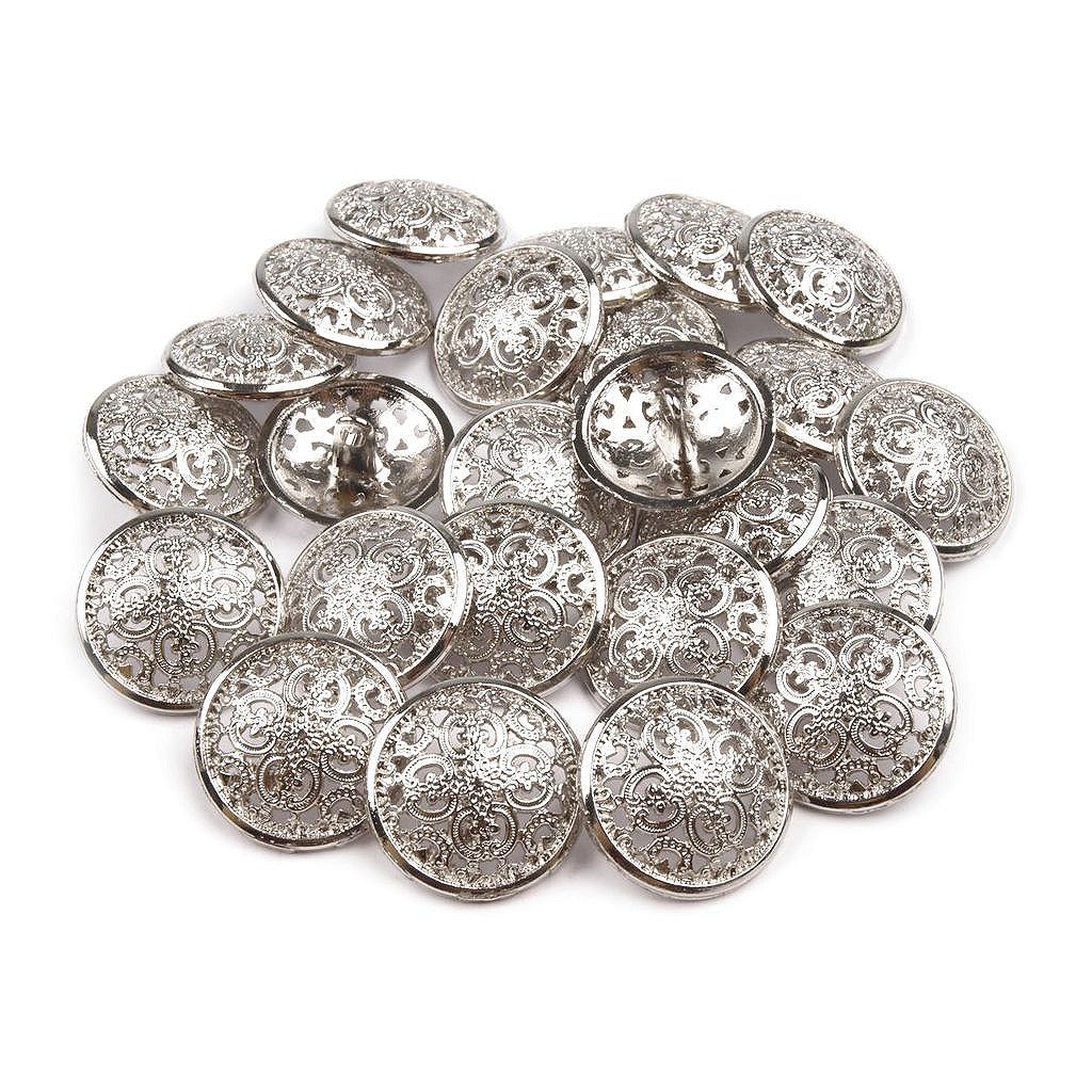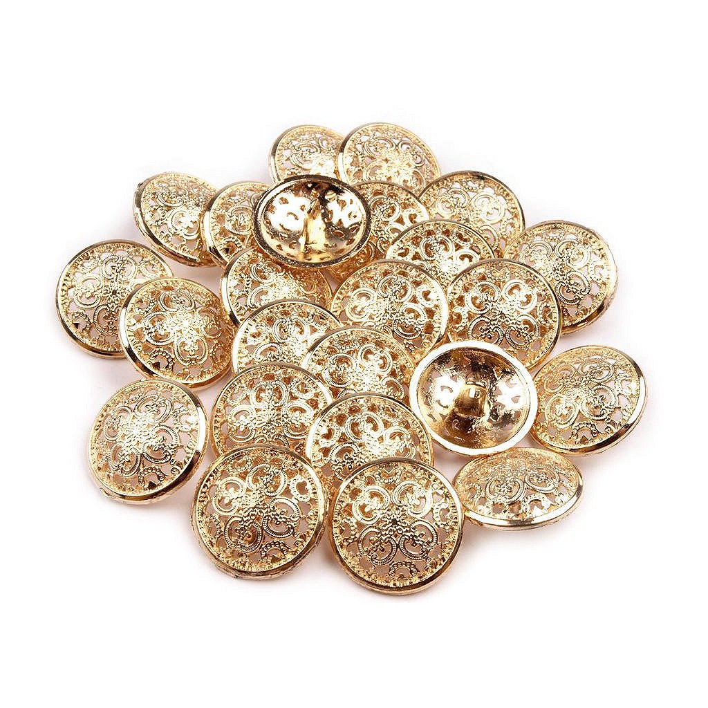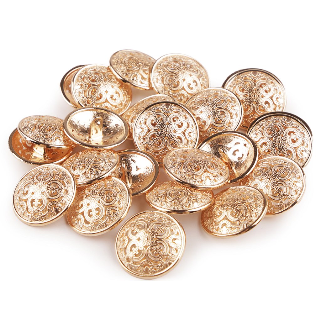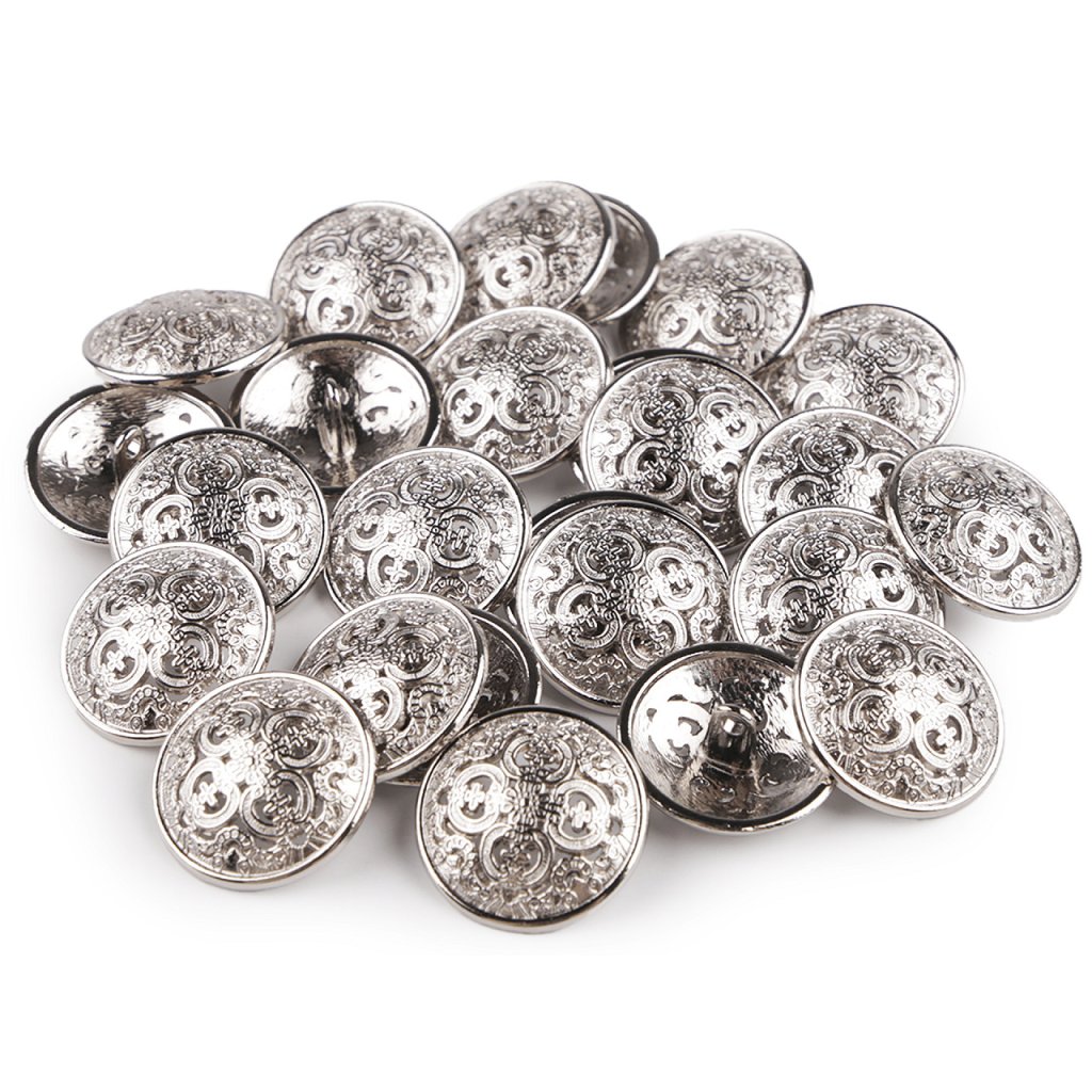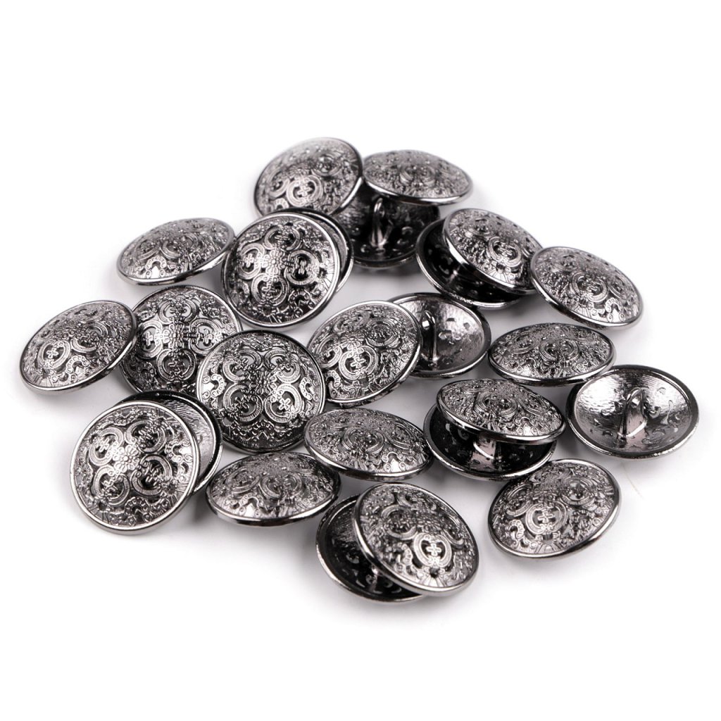 Knöpfe aus Metall mit Filigranmuster. Sie sind aus der Legierung von Zink und nicht magnetischen Metallen hergestellt. Die Knöpfe werden von unten angenäht. Sie wirken elegant an Mänteln, Sakkos, Hemden usw. Bestimmt sind sie auch für Handtaschen, Taschen oder Hüte.
