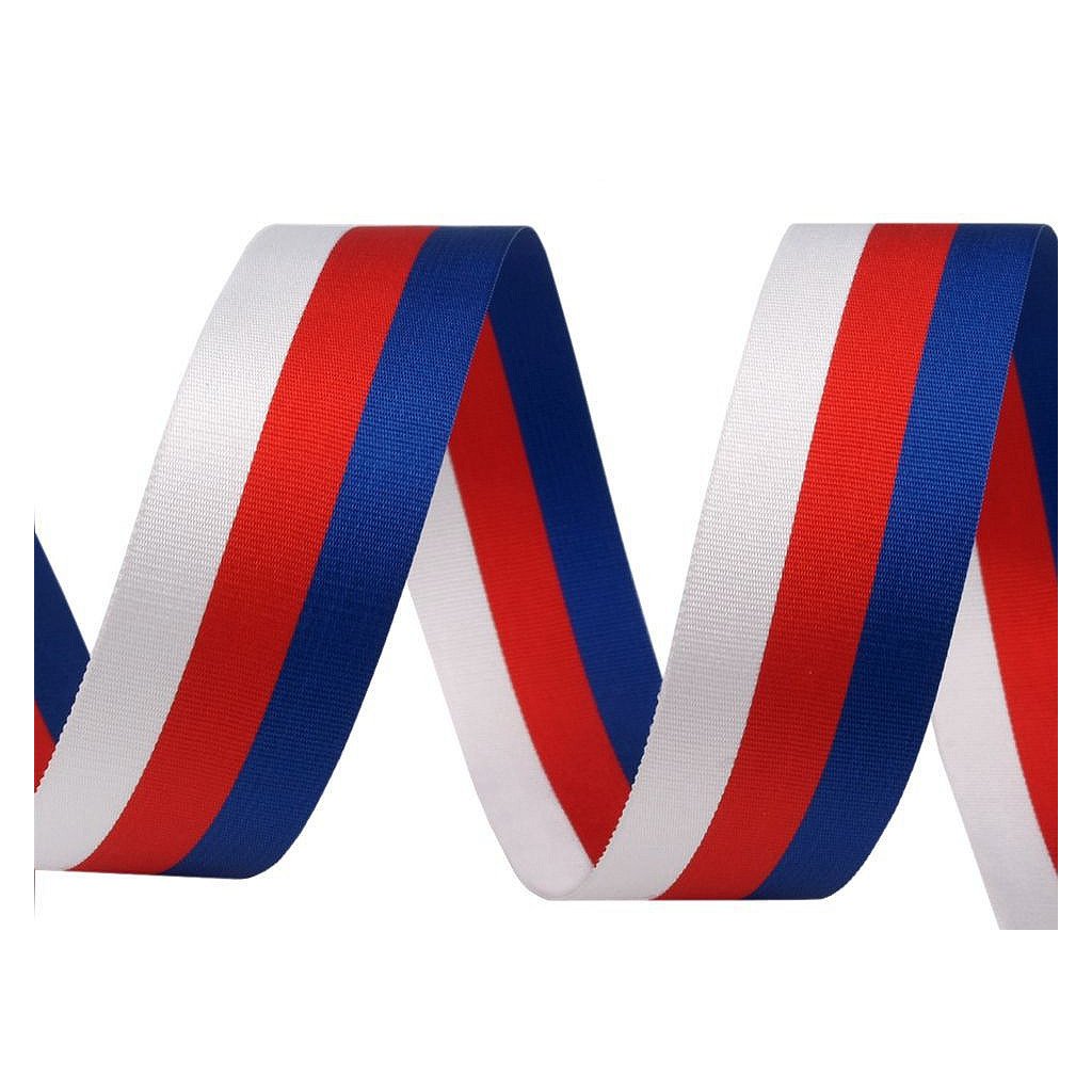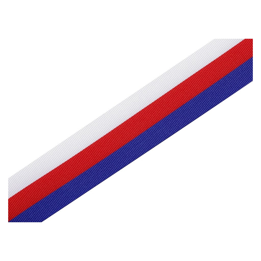 Gemäß der festen Norm des Herstellers können in 10 m 2 Absperrungen vorhanden sein, die miteinander verklebt sind. Die Toleranz für 10 Spulen beträgt +/- 10 cm. Es gibt 5 Farbbandpackungen pro 10 m in einer Packung. Dieses Band in den tschechischen Nationalfarben wird hauptsächlich zum Aufhängen von Medaillen verwendet.