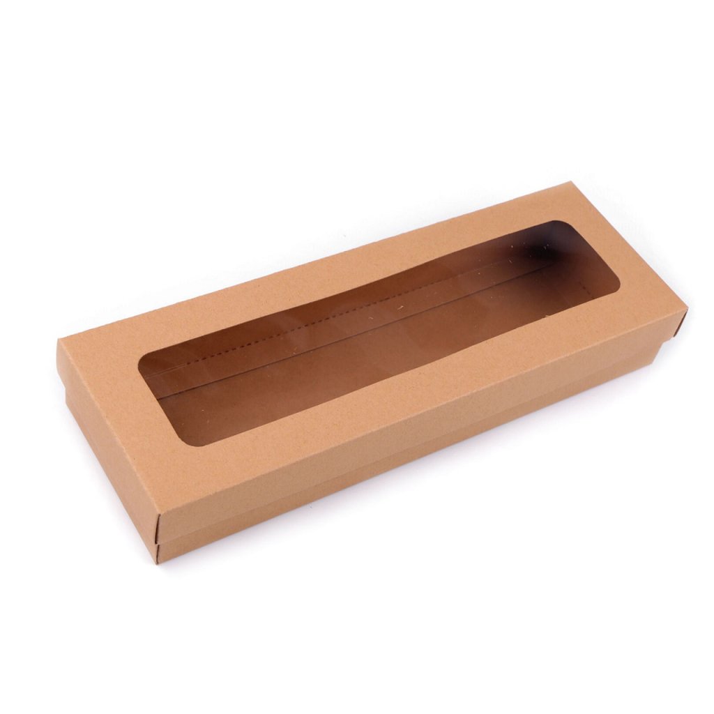 Die lange Pappschachtel hat eine Aussparung im transparenten Foliendeckel. Sie können damit Geschenke, Schals, Krawatten, lange Handschuhe usw. verpacken. Sie können es auch nach Ihrem Geschmack dekorieren. Wir liefern die Box in zerlegtem Zustand (oberer Deckel - 23,5 x 43,5 cm, unterer Teil der Box - 31 x 51 cm). Sie können es einfach an den markierten Biegekanten falten. Die Größe des Fensters beträgt 5,5 x 25,5 cm. Wir haben eine Fotoanleitung zum Falten der Box für Sie vorbereitet.
