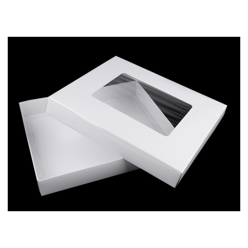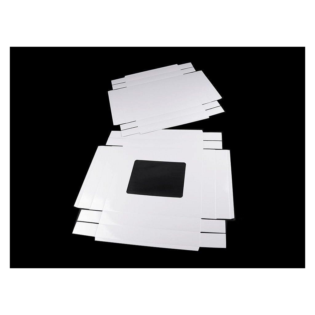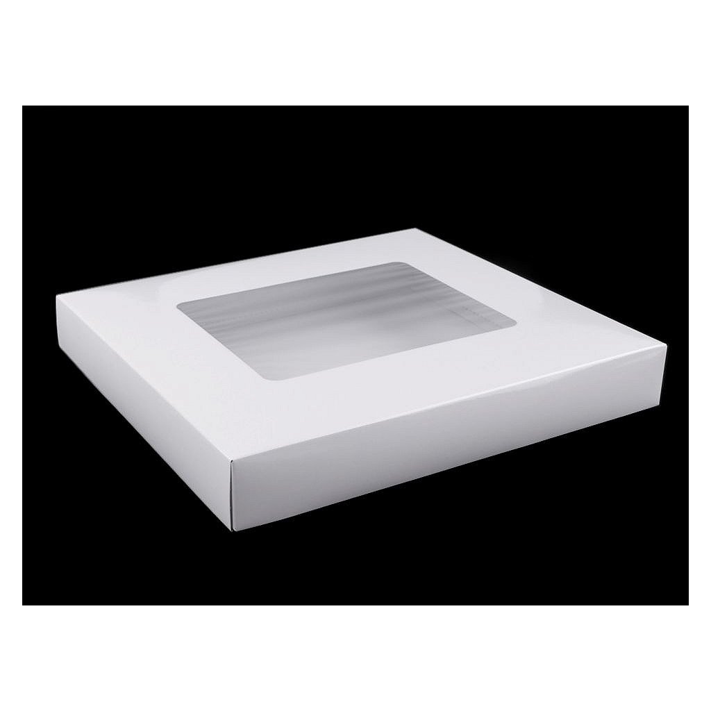 Die rechteckige Pappschachtel hat im Deckel eine Aussparung aus transparenter Folie. Die Oberfläche der weißen Box ist glänzend . Sie können damit Geschenke, Schals verpacken, kleine Gegenstände aufbewahren usw. Sie können es auch nach Ihrem Geschmack dekorieren. Wir liefern die Box in zerlegtem Zustand (oberer Deckel - 43 x 46 cm, unterer Teil der Box - 42 x 45,5 cm). Sie können es einfach an den markierten Biegekanten falten. Die Größe des Fensters beträgt 13 x 17 cm. Eine Fotoanleitung zum Falten haben wir für Sie vorbereitet.