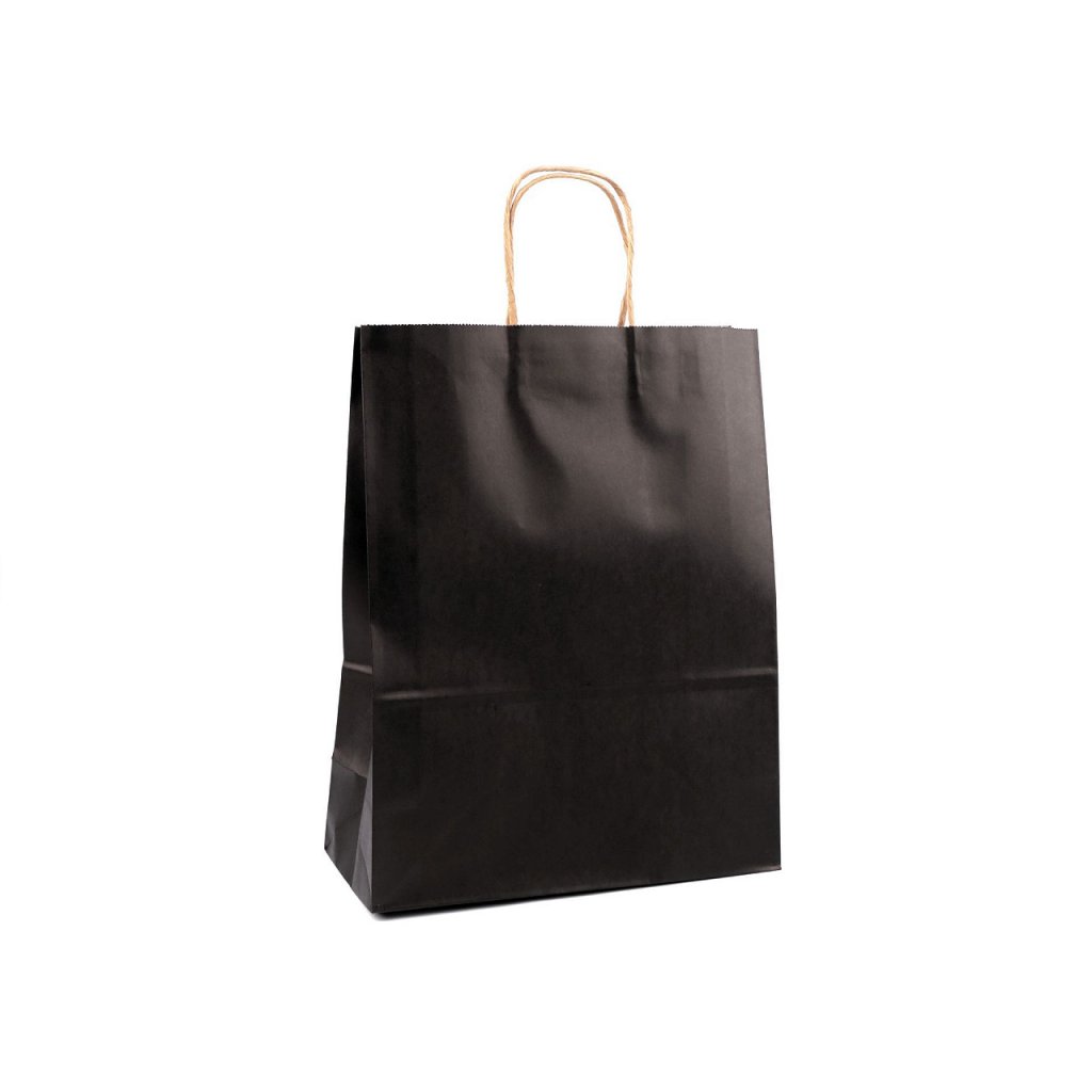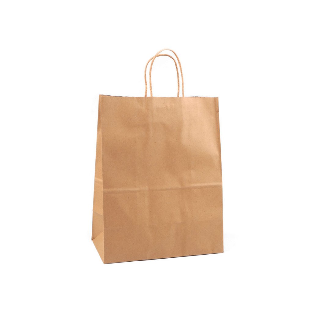 Mit einer großen Papiertüte können Sie schnell ein Geschenk oder eine Ware für Ihre Kunden verpacken. Es besteht aus starkem Papier. Der Griff der Tasche besteht aus gedrehter Papierschnur.