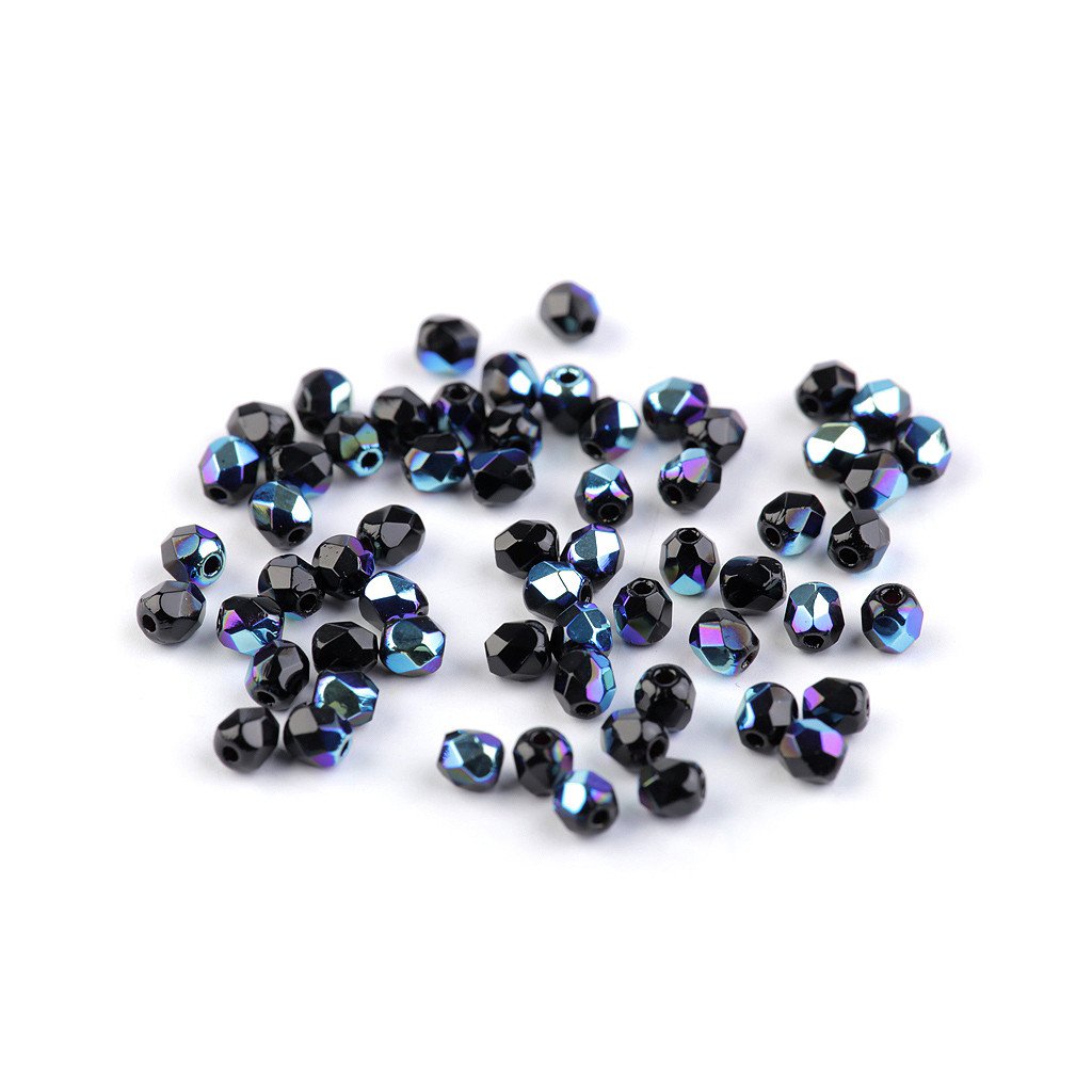 Feuerpolierte Glasperlen sind der größte Stolz der tschechischen Glasmacher. Sie zeichnen sich vor allem durch ihren Glanz aus. Tschechische Feuerperlen sind eine beliebte Art von Glasperlen, die vor 5 Jahrhunderten entstanden sind. Juweliere machen ausgiebigen Gebrauch von sogenanntem schwarzem Schmuck, der verschiedene Größen von geschliffenen Perlen und schwarzen Metallkomponenten kombiniert. Sie können Feuerbälle zum Stricken, genähten Schmuck, Kabeln, Memory-Armbändern usw. verwenden. Es gibt etwa 150 Perlen in einer 5-g-Packung.