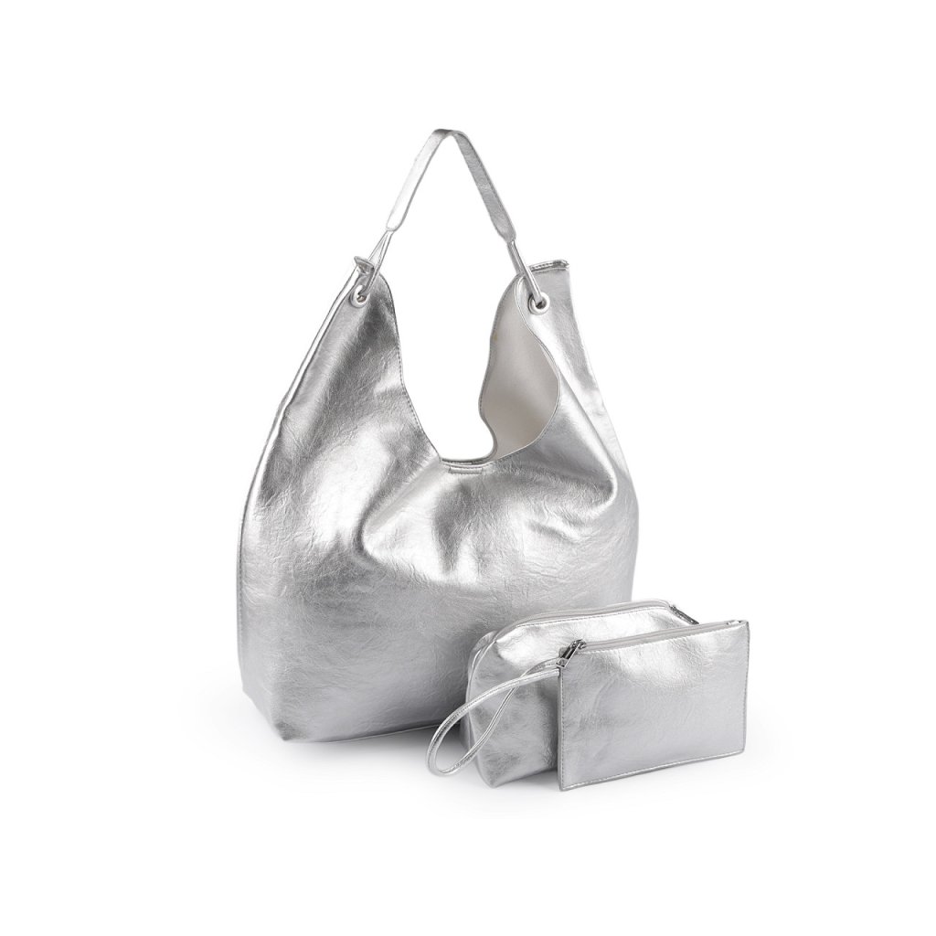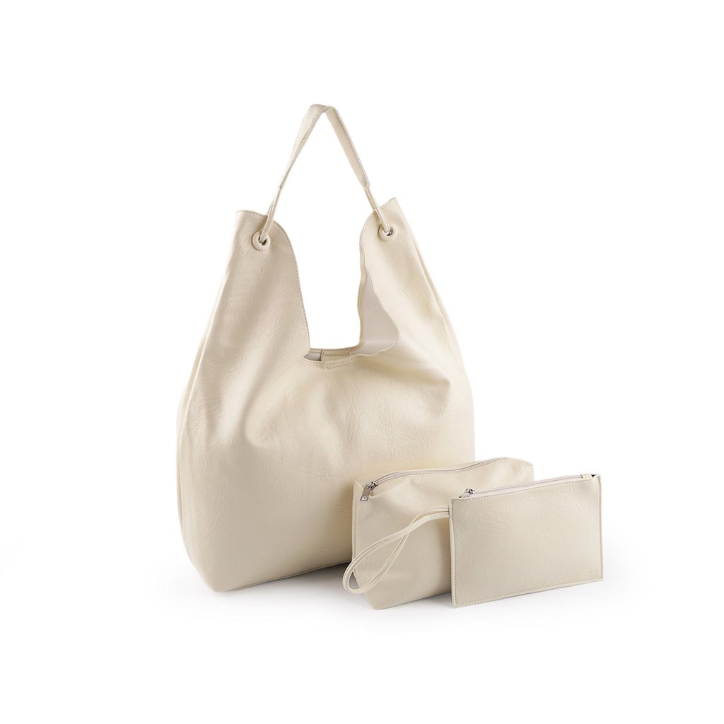 Sie werden die geräumige 3-in-1-Handtasche wegen ihres schlichten, eleganten und klaren Designs lieben. Sie verfügt über einen Tragegriff, der sich zum Tragen in der Hand oder über der Schulter eignet. Im Inneren der Handtasche befinden sich zwei Einsteckfächer . Alles ist aus hochwertigem Öko-Leder gefertigt, das sich sehr angenehm anfühlt. Dieses 3-in-1-Set eignet sich für den Alltag und für Reisen, wo Sie seine Vorteile voll ausnutzen können. Die große Handtasche hat einen breiten Boden , wird mit einem Magneten verschlossen, bietet viel Platz und ist ungefüttert. Das Etui wird mit einem Reißverschluss verschlossen und hat einen verbreiterten Boden. Das kleine Etui lässt sich zudem mit einem Reißverschluss schließen und verfügt über einen Tragegurt zum Tragen in der Hand.