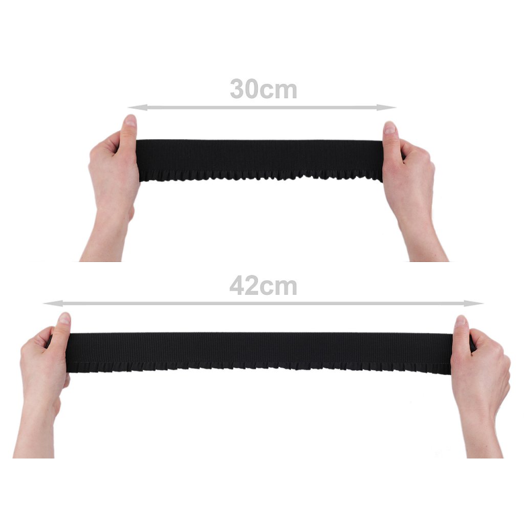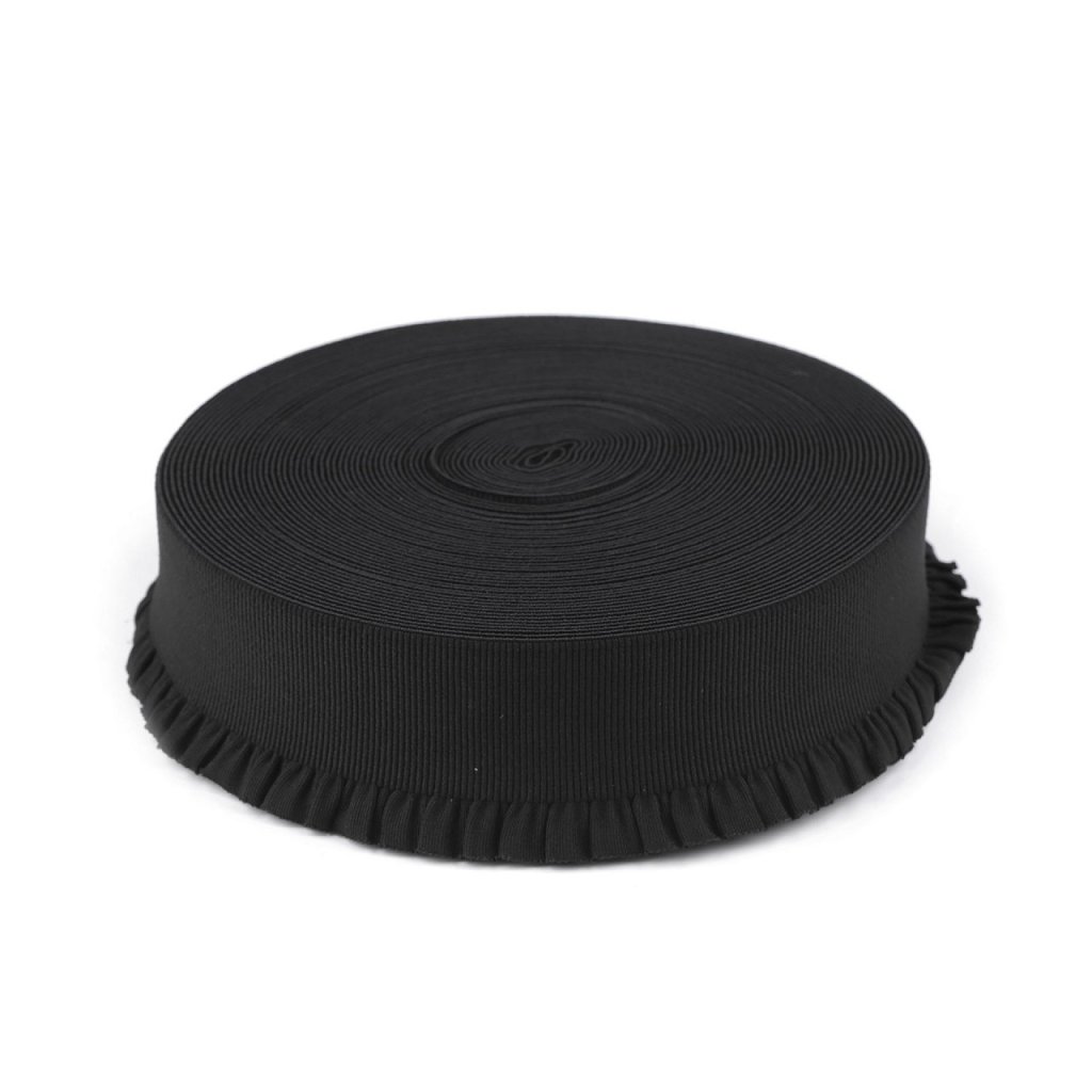 Das Gummiband hat einen dezenten Faltenrand . Sie können es zum Verzieren von Kleidern, Hosen, Röcken, Jacken usw. verwenden. Es eignet sich auch zur Herstellung von Gürteln für Blusen, Kleider oder Pullover. Das Gummiband ist stark zugfest.