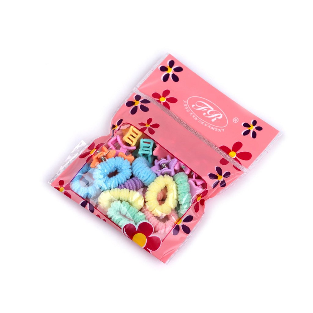 Das Set aus bunten Clips und Haargummis erfreut sich großer Beliebtheit. Mädchen können kleine Strähnen aus feinem Babyhaar mit Haarnadeln abschneiden. In der Tasche befinden sich 10 Clips und 10 Bänder. Die Farben der Clips und Bänder können je nach Packung variieren.